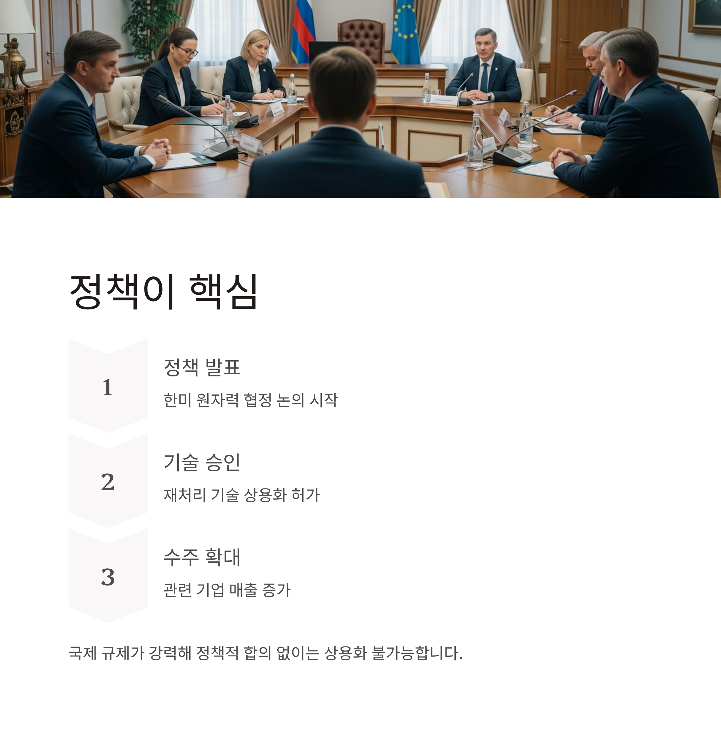 | 국제 규제 | NPT 체제·한미 원자력 협정 등 영향 |