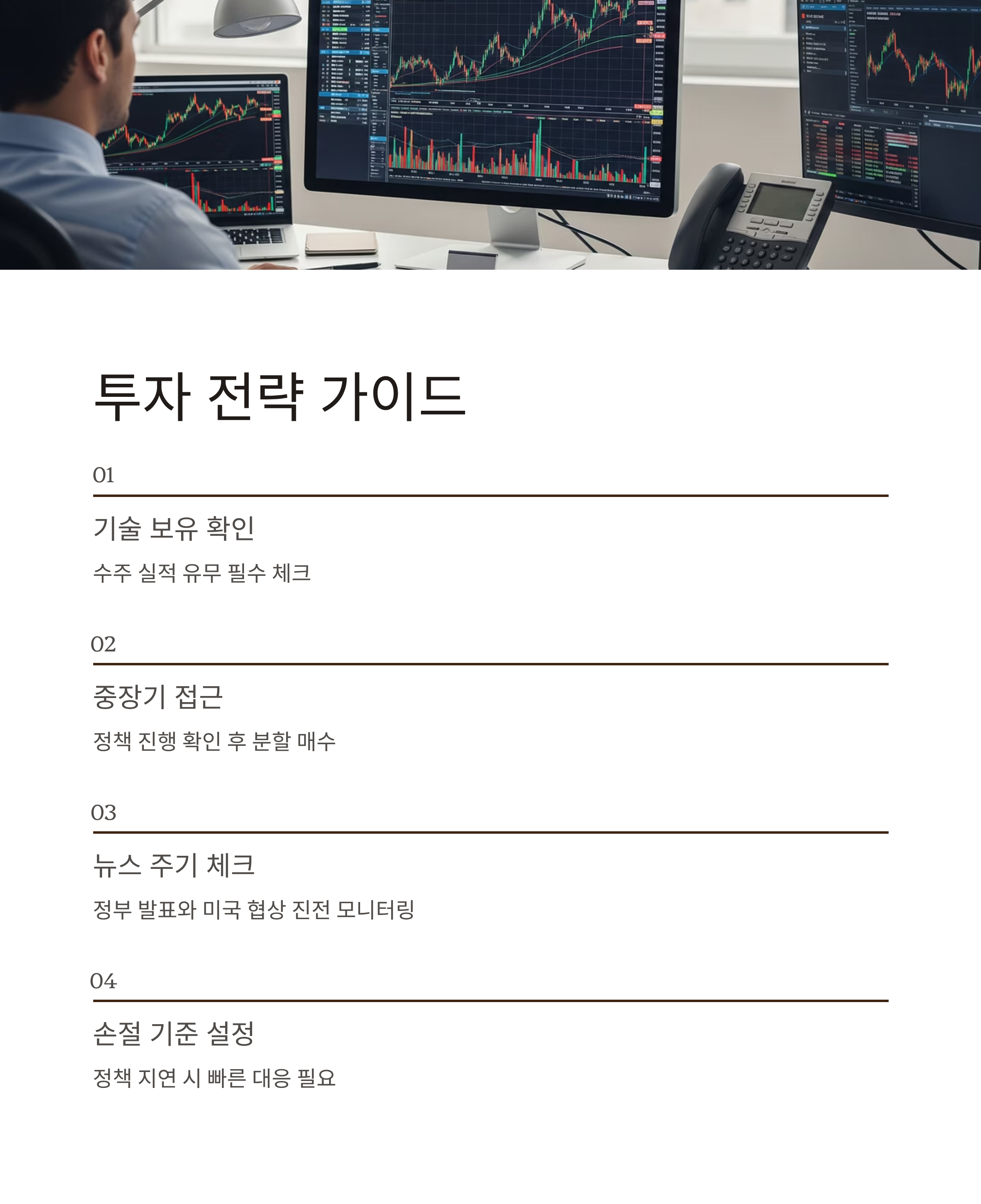 - 손절 기준 설정: 정책 지연·기술 상용화 실패 시 빠른 대응 필요