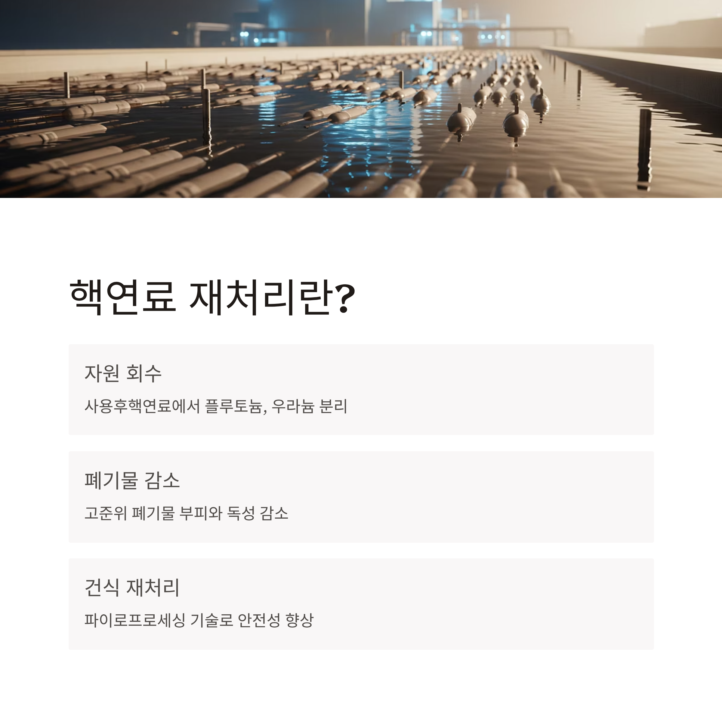 핵연료 재처리는 단순한 원전 기술이 아닌, 에너지 순환 시스템의 중심축이 될 수 있는 미래 산업입니다.