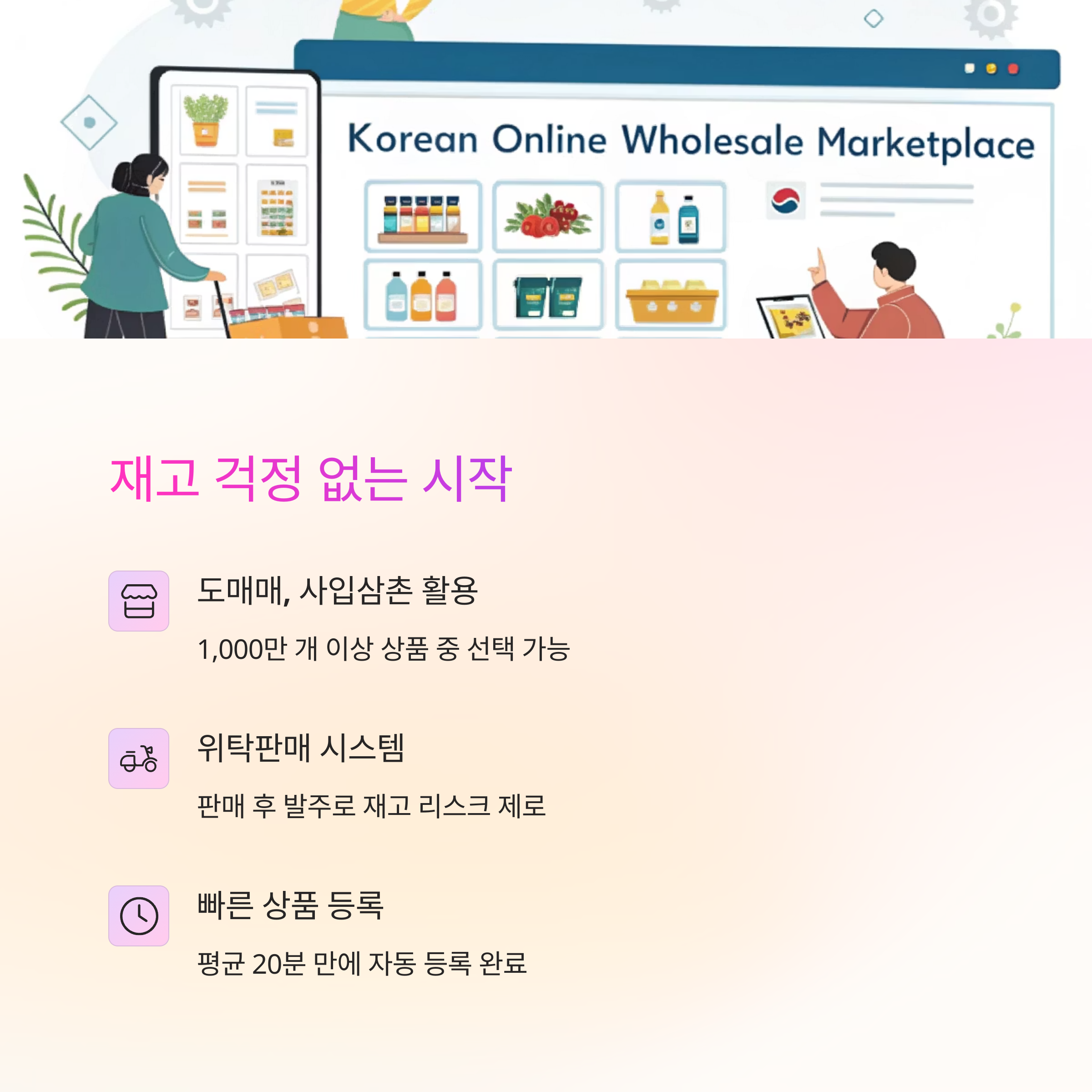 | 혼자서도 가능한 이유 | 위탁판매 시스템, 자동 송장 연동, 템플릿 상품설명 등 운영 도구가 풍부 |