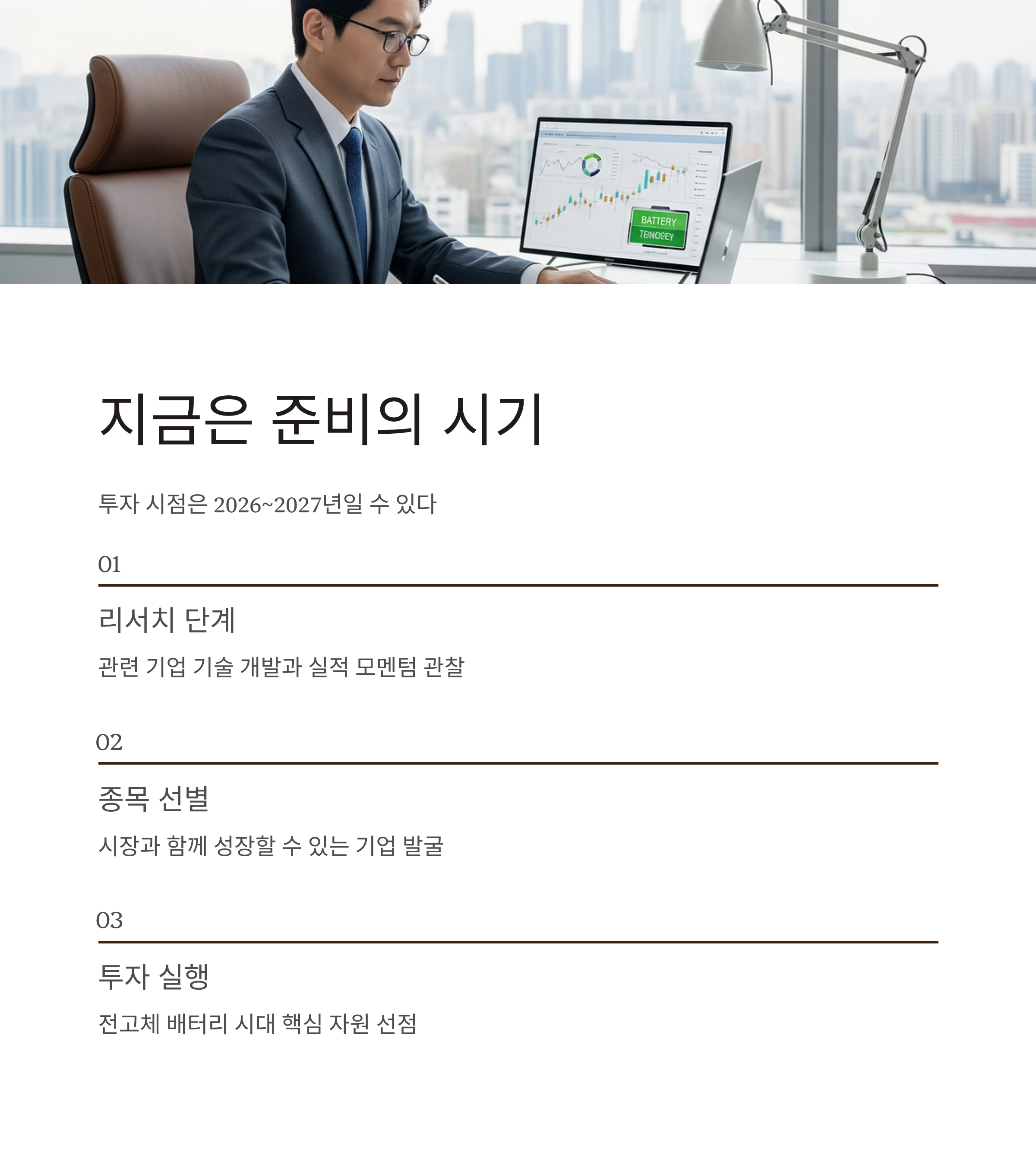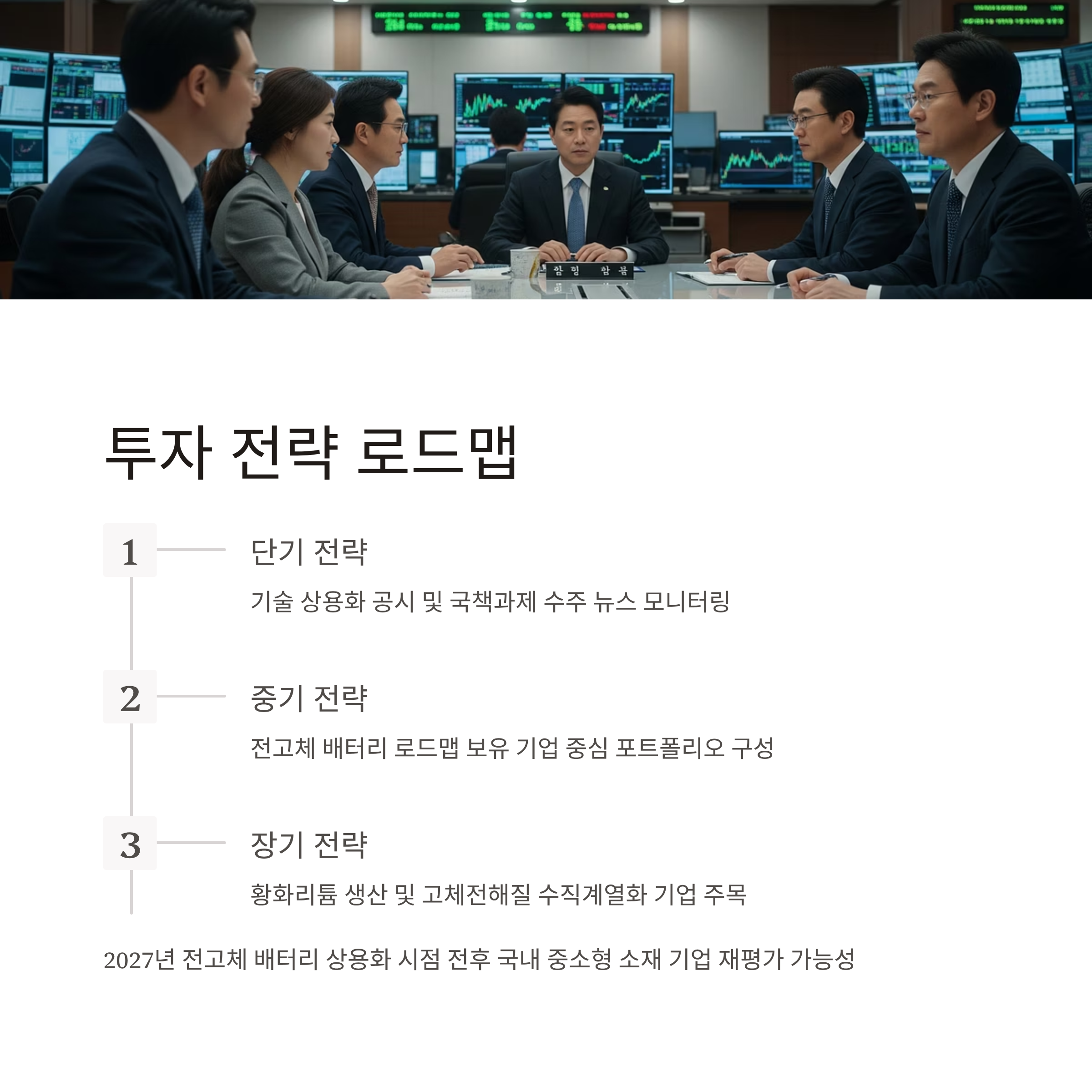 | 중기 전략 | 전고체 배터리 로드맵을 가진 기업 중심 포트폴리오 구성 |