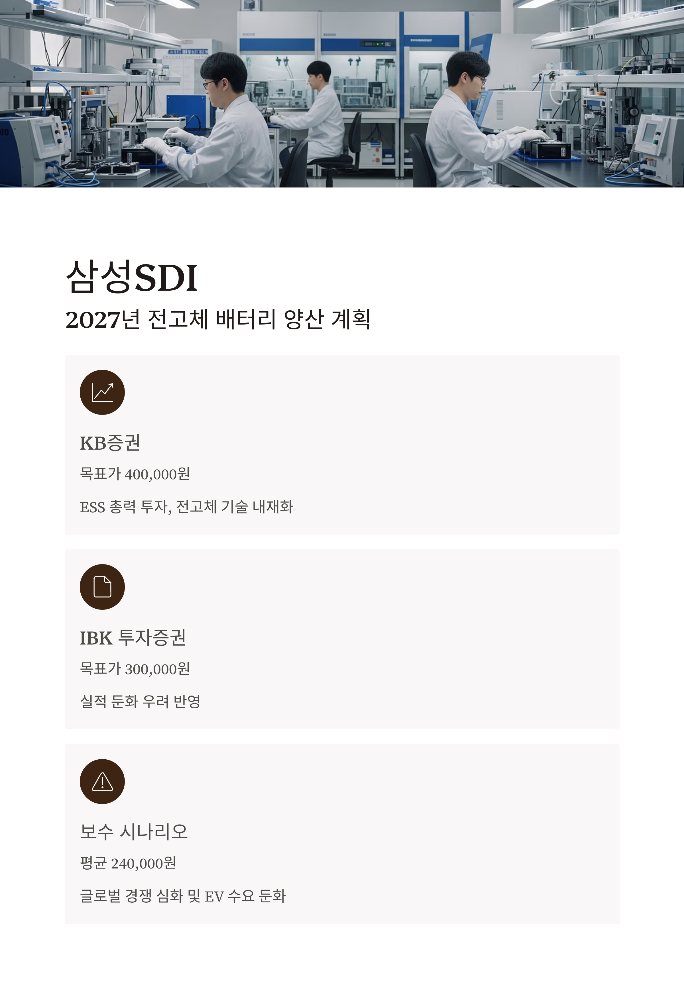 | KB증권 | 400,000 | ESS 총력 투자, 전고체 기술 내재화 중 |