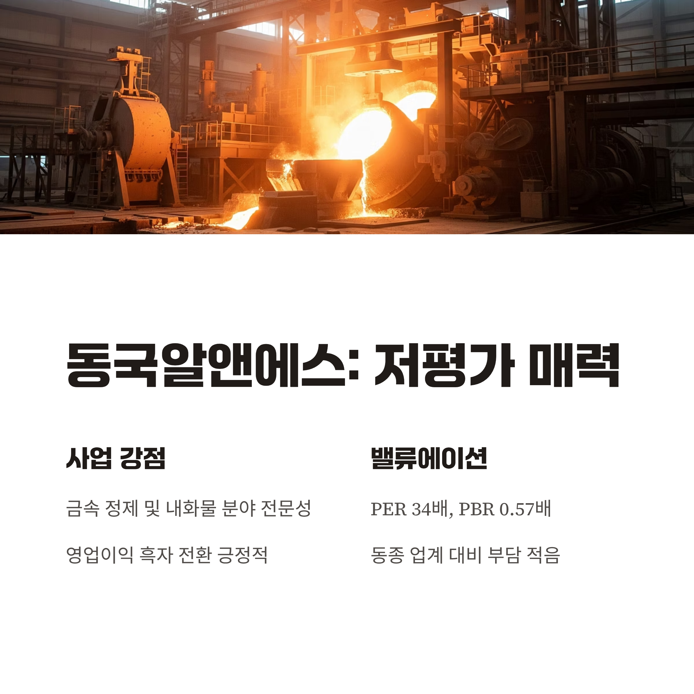 | 동국알앤에스 | 34.6배 | 0.57 | 정체 or 미세 성장 | 중간 이상 | 저평가 성장 가능성 |