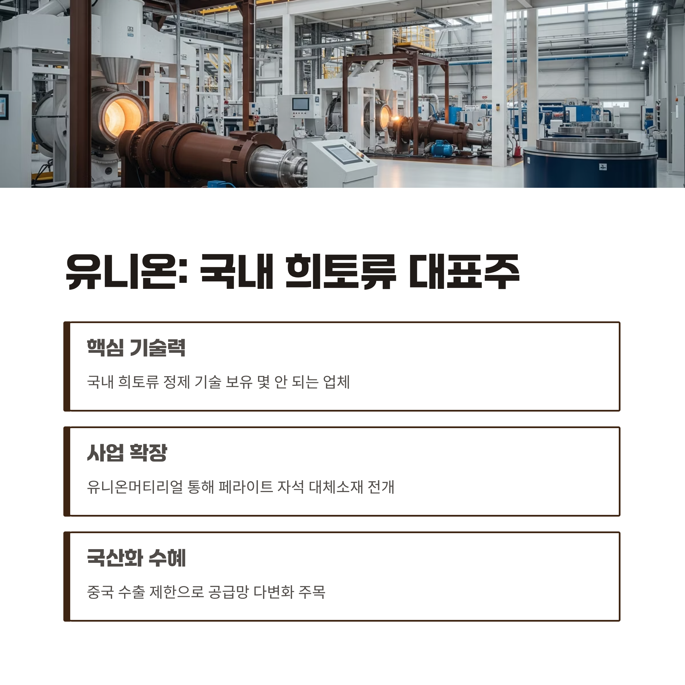 이 기업은 국내에서 희토류 정제 기술을 보유한 몇 안 되는 업체로,