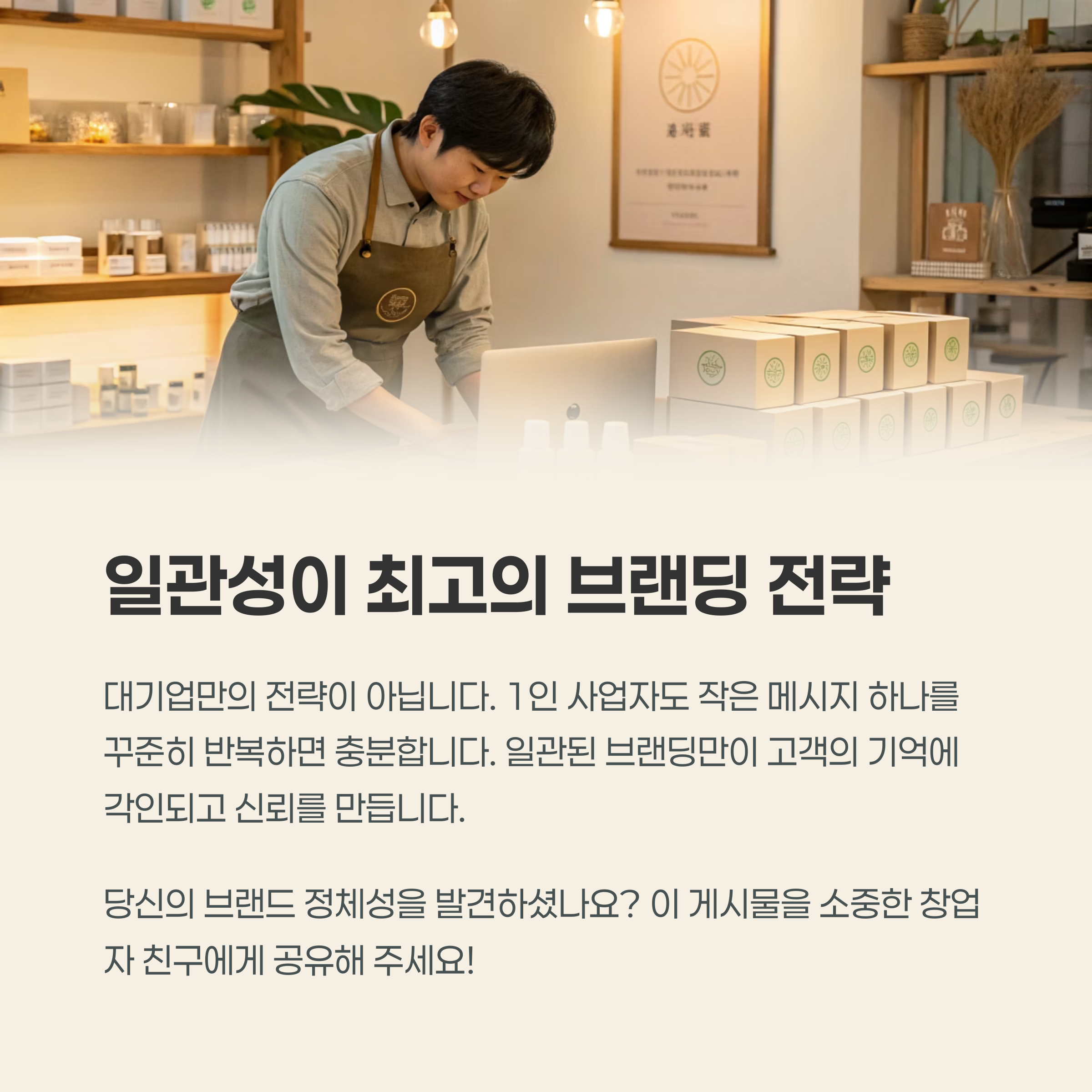 여러분의 브랜드 정체성은 무엇인가요? 혼자 브랜딩하며 겪은 고민이나 노하우를 댓글로 공유해주세요. 서로의 경험을 나누며 더 멋진 브랜드를 만들어가요!