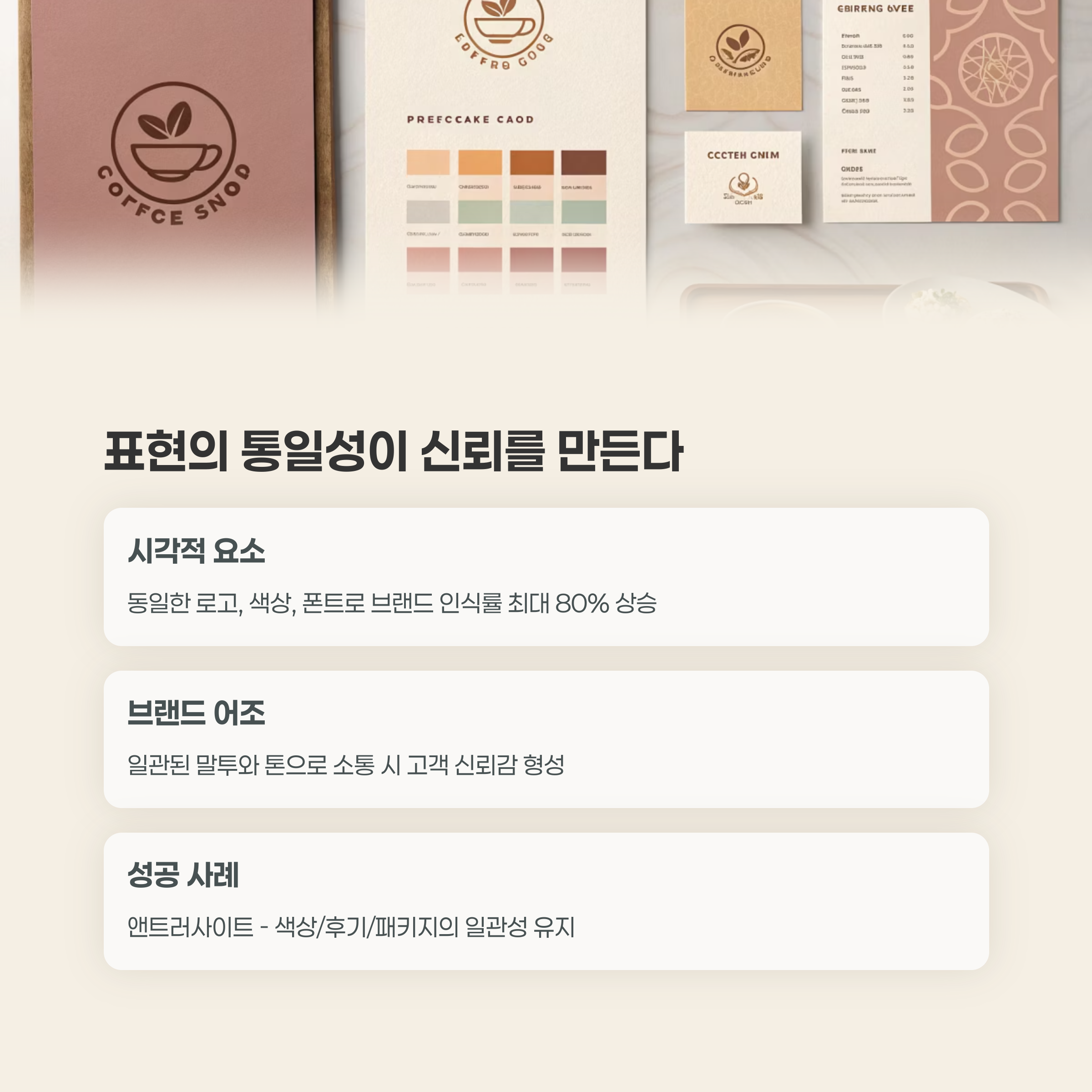 브랜딩은 거창하고 복잡한 작업이 아닙니다. 나의 고객에게 어떤 느낌을 주고 싶은지 고민하고, 그 감정을 일관되게 표현하는 것이 시작입니다. 로고 없이도, 전문가의 손길 없이도 혼자서 브랜딩은 충분히 가능합니다. 중요한 것은 지속성과 통일감! 오늘부터 나만의 색깔을 찾아보세요.