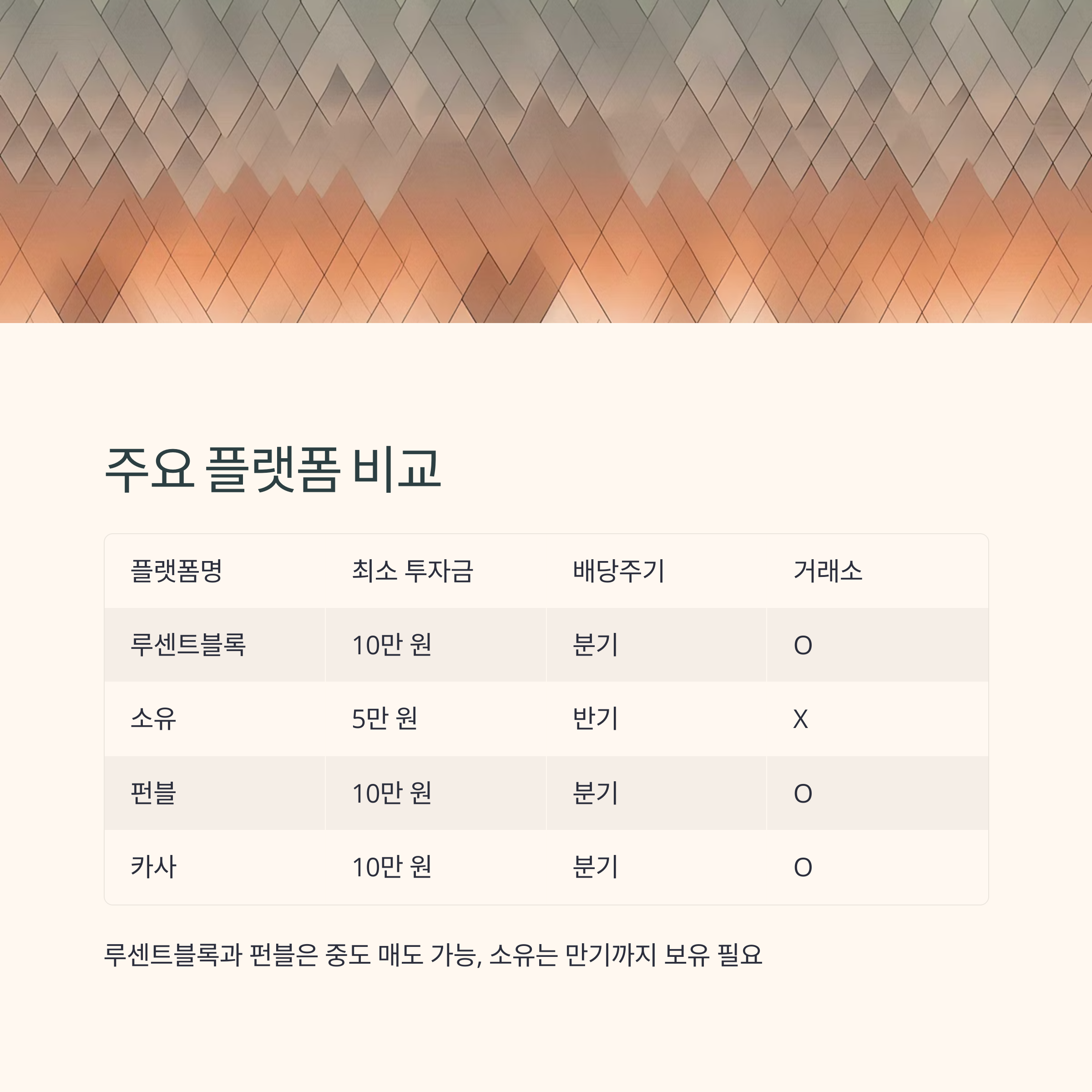 플랫폼명 최소 투자금 배당주기 거래소 기능