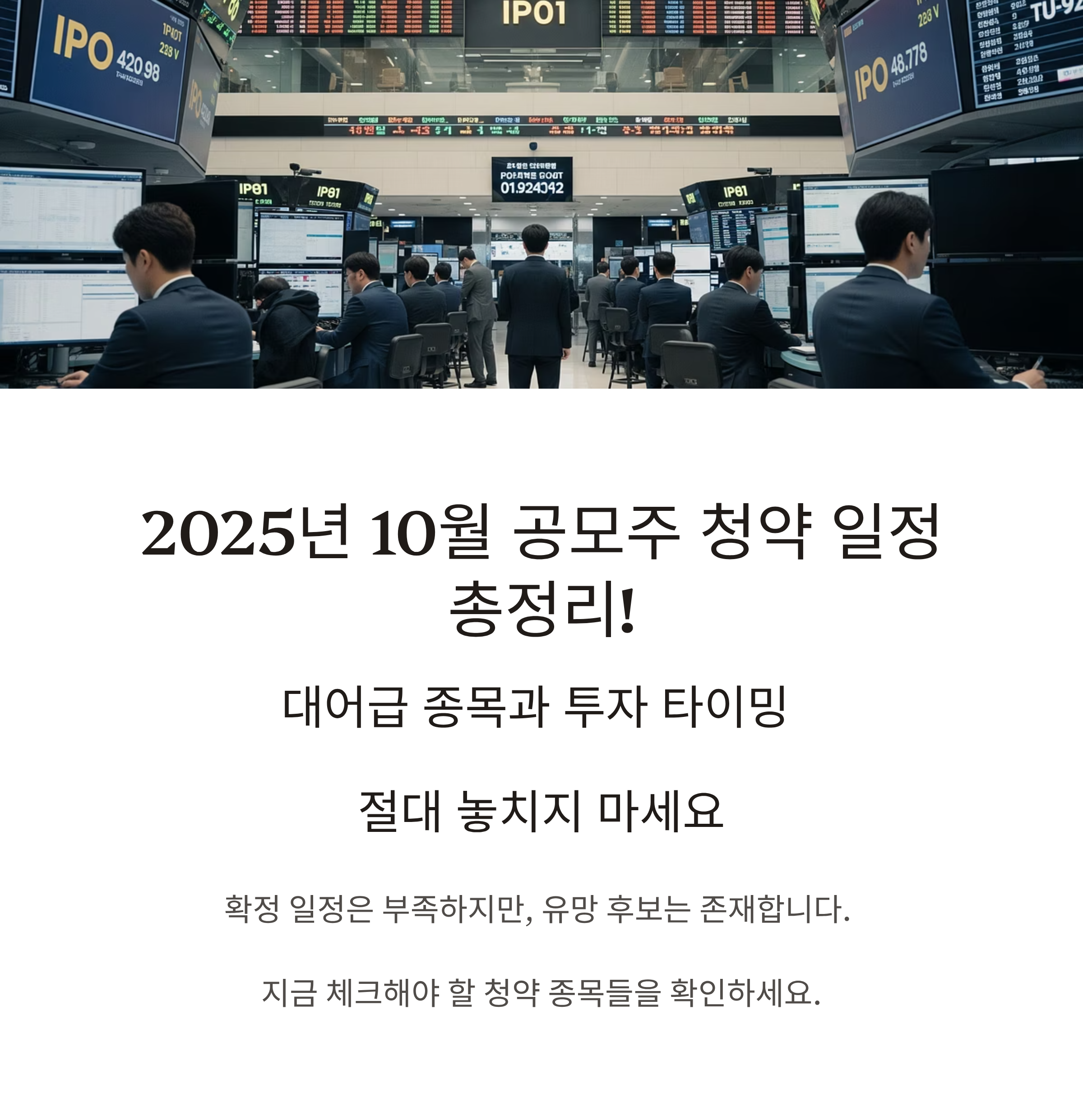 2025년 10월 공모주 청약 일정 총정리! 대어급 종목과 투자 타이밍 절대 놓치지 마세요