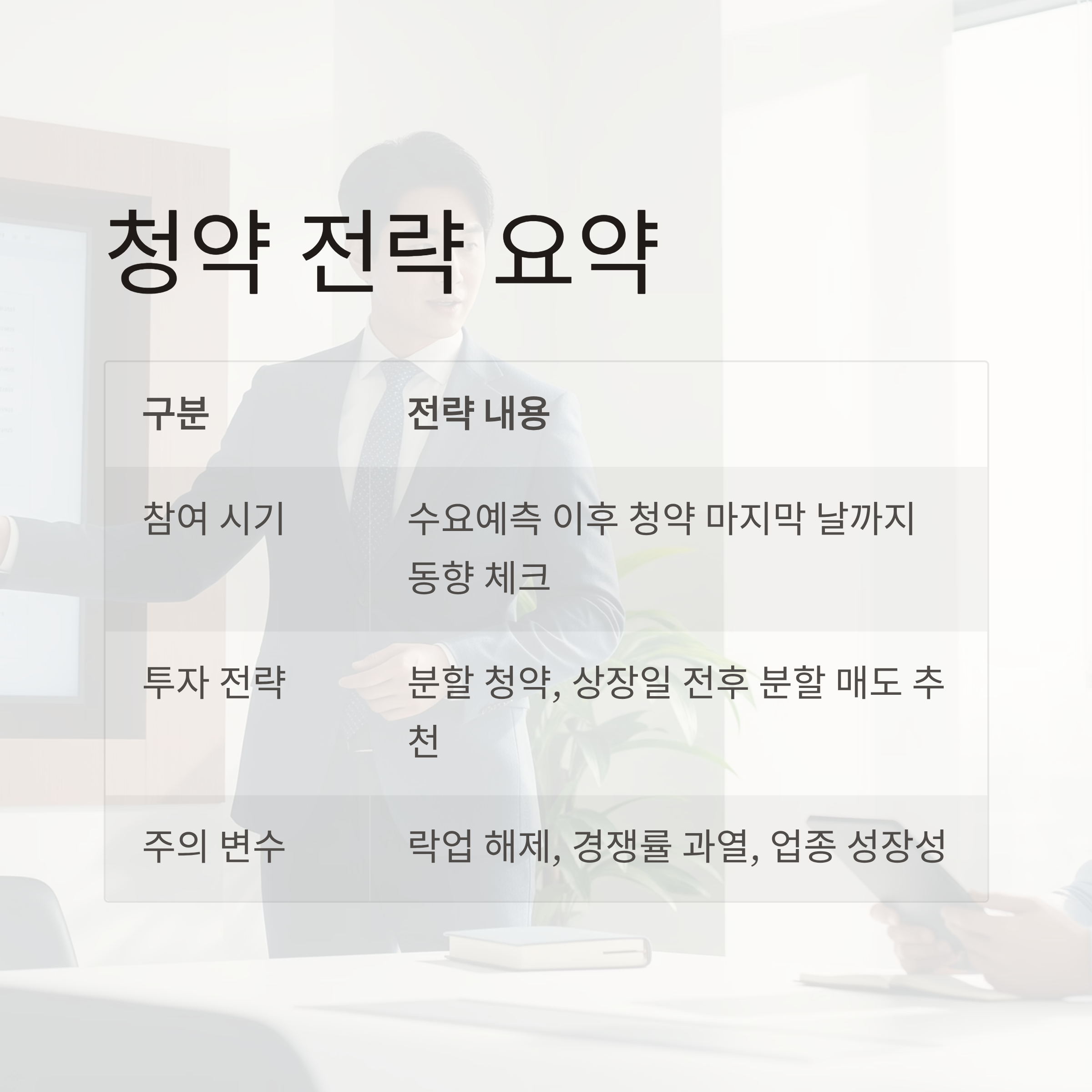 | 투자 전략 | 분할 청약, 상장일 전후 분할 매도 전략 추천 |