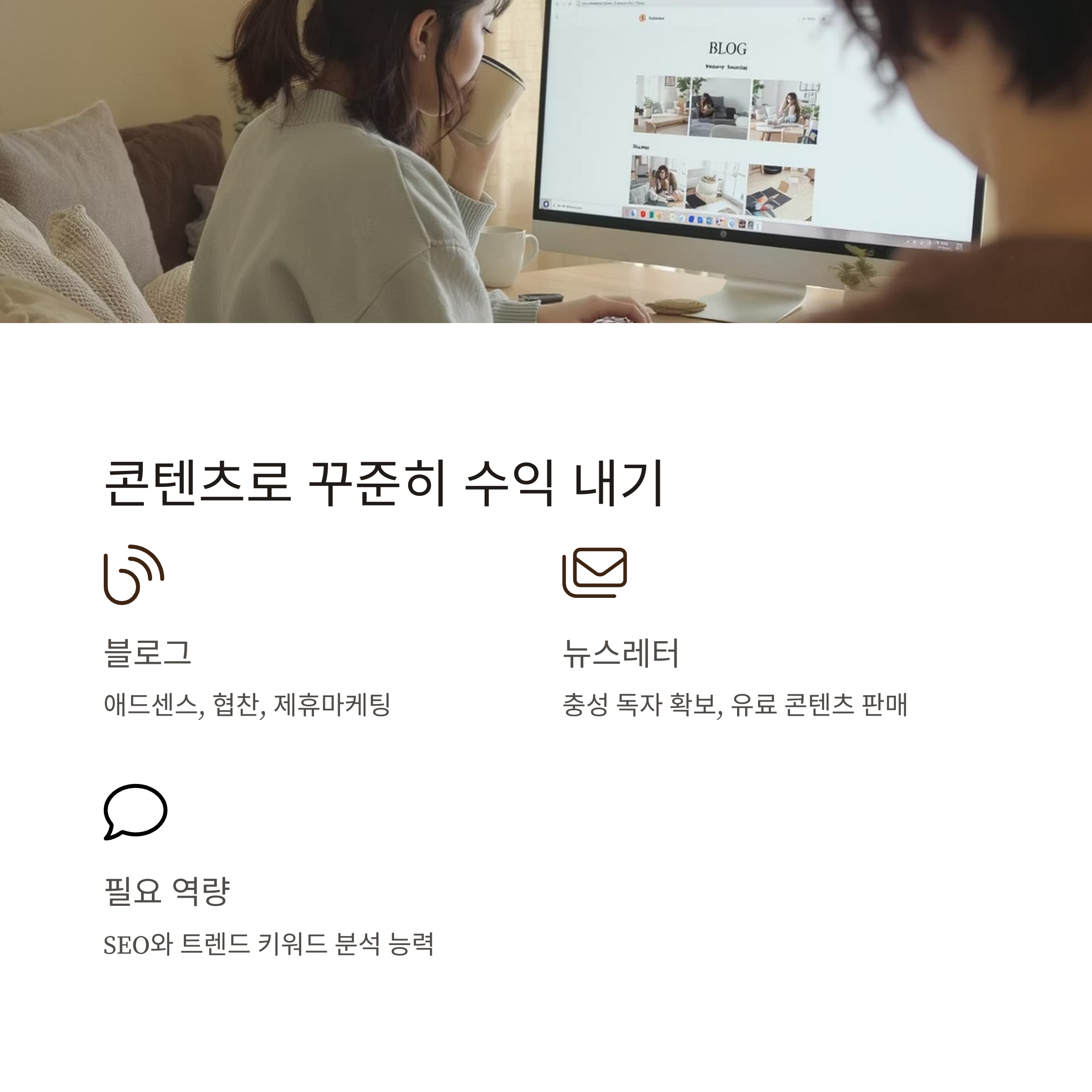 포인트: SEO와 트렌드 키워드 분석 능력이 필요