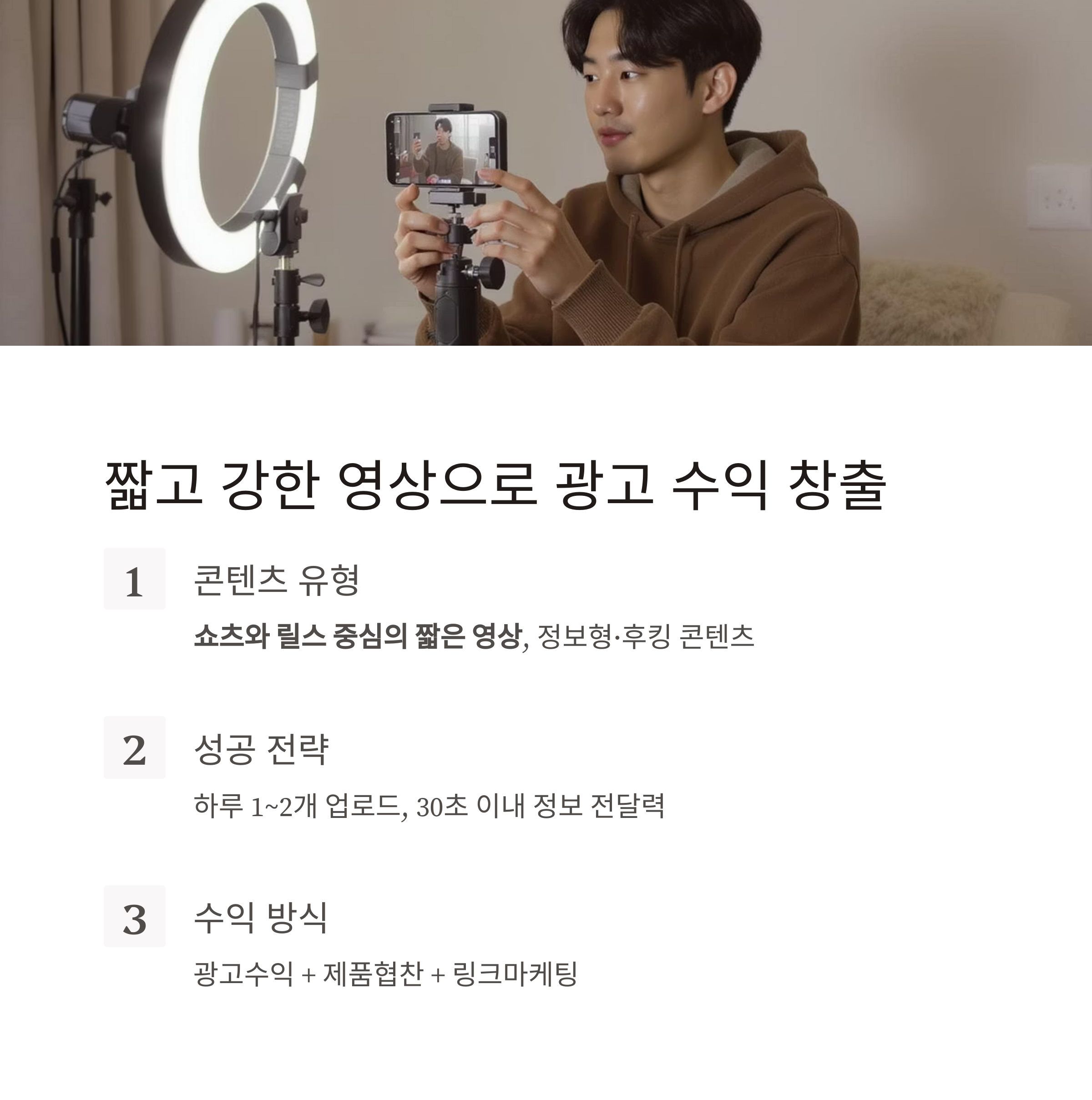 포인트: 하루 1~2개 업로드, 30초 이내 정보 전달력