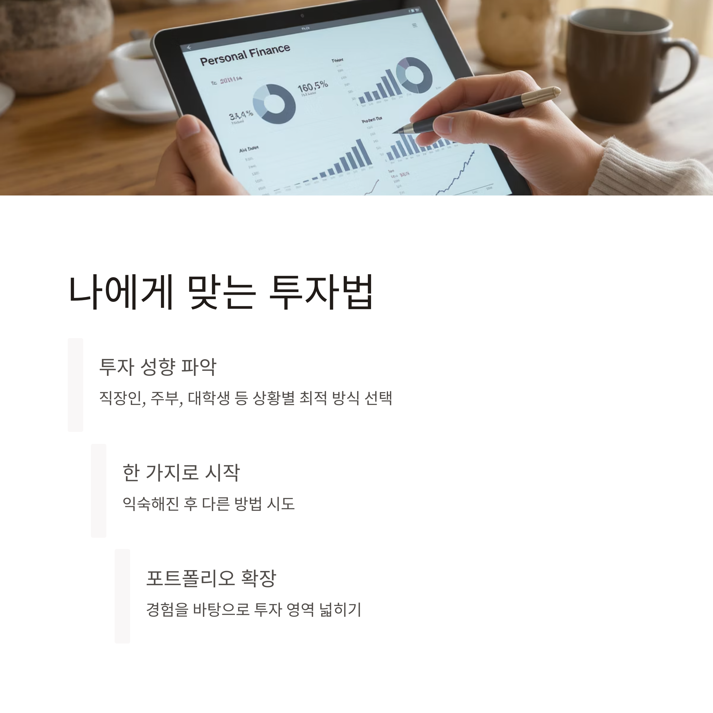 월급 외 수입이 없는 직장인, 주부, 대학생 등 상황에 따라 최적의 투자 방식이 다릅니다.