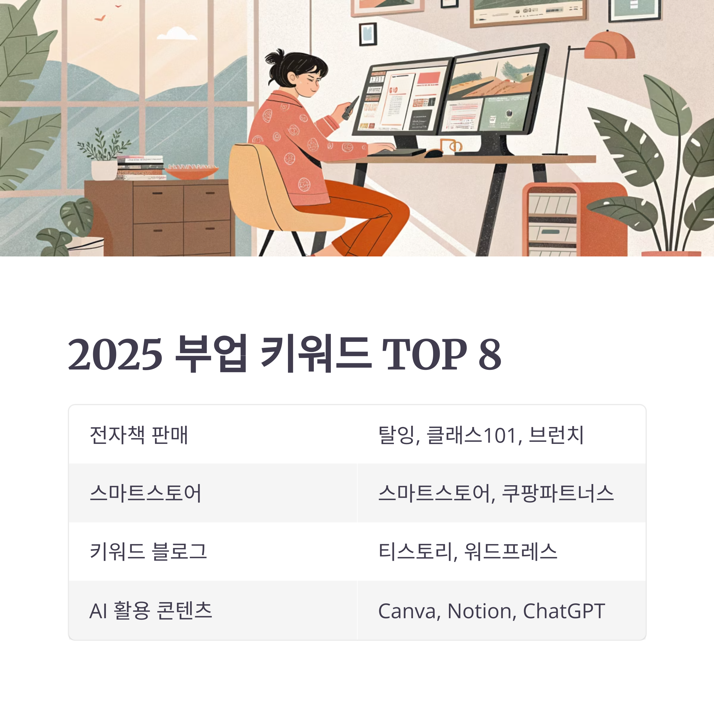 📊 2025 부업 키워드 TOP 8 (표 형태로 한눈에 보기)