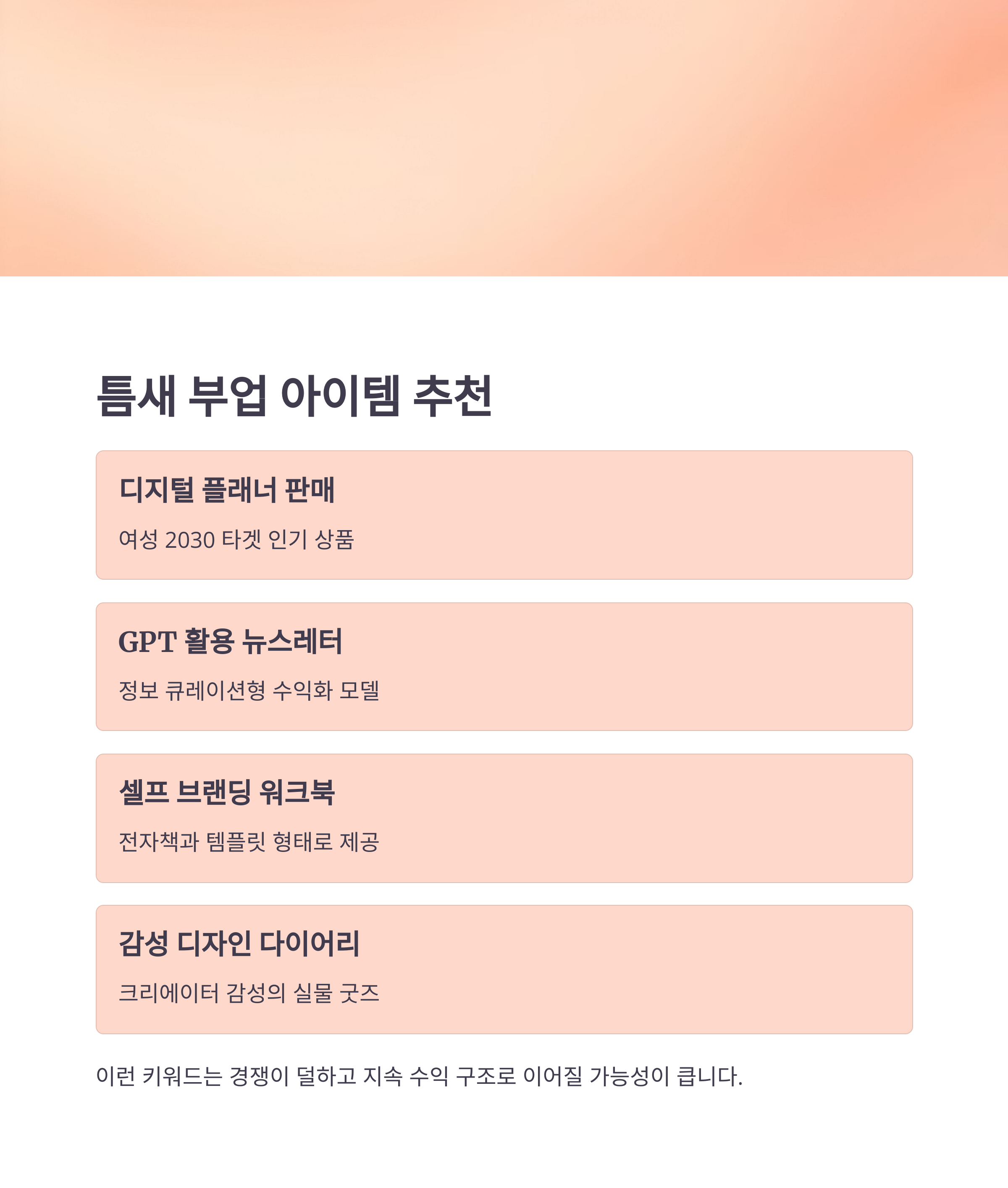 💡 새로운 진입 키워드 – 틈새 부업 아이템 추천