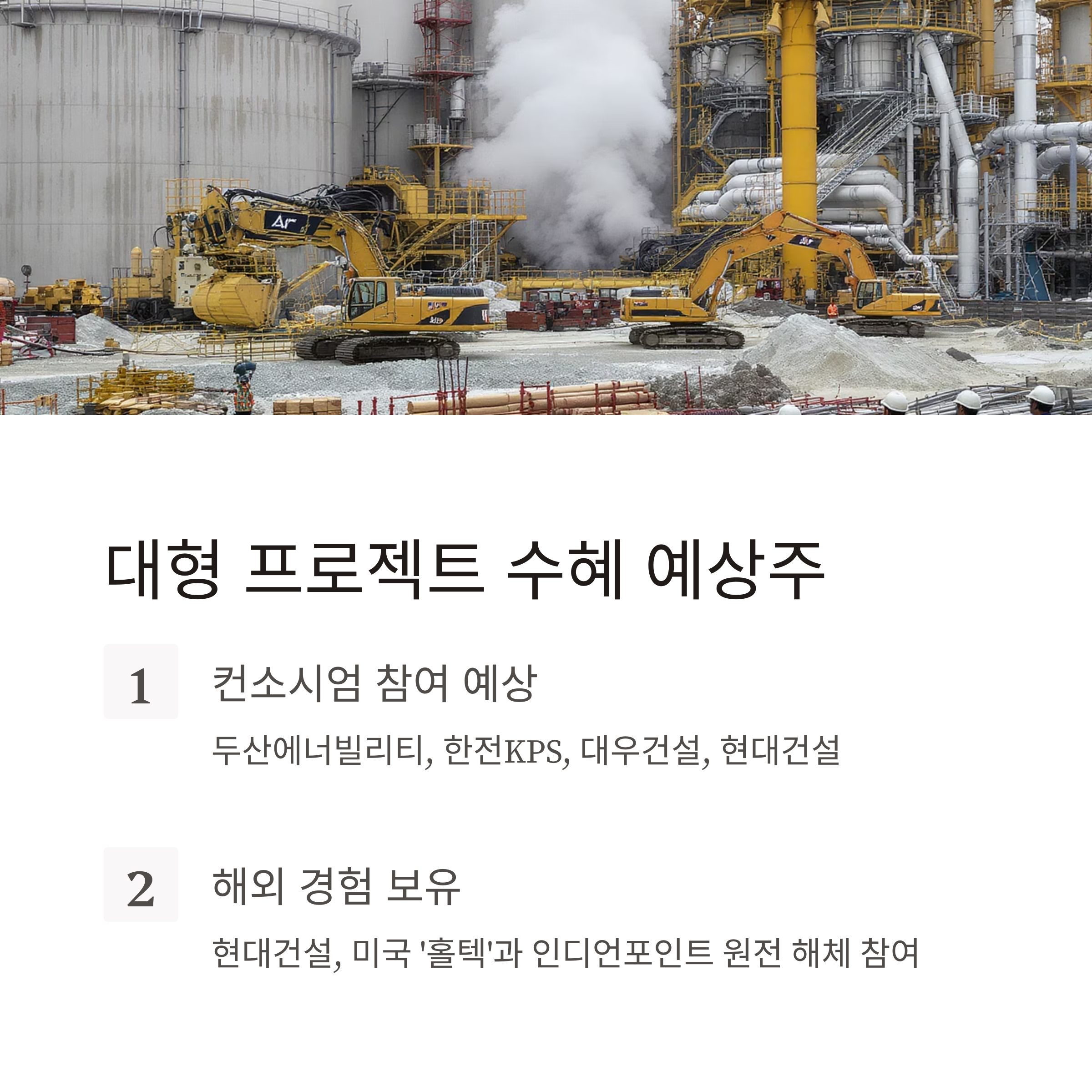 대형 프로젝트 수혜 예상주: 두산·한전KPS·대우·현대
