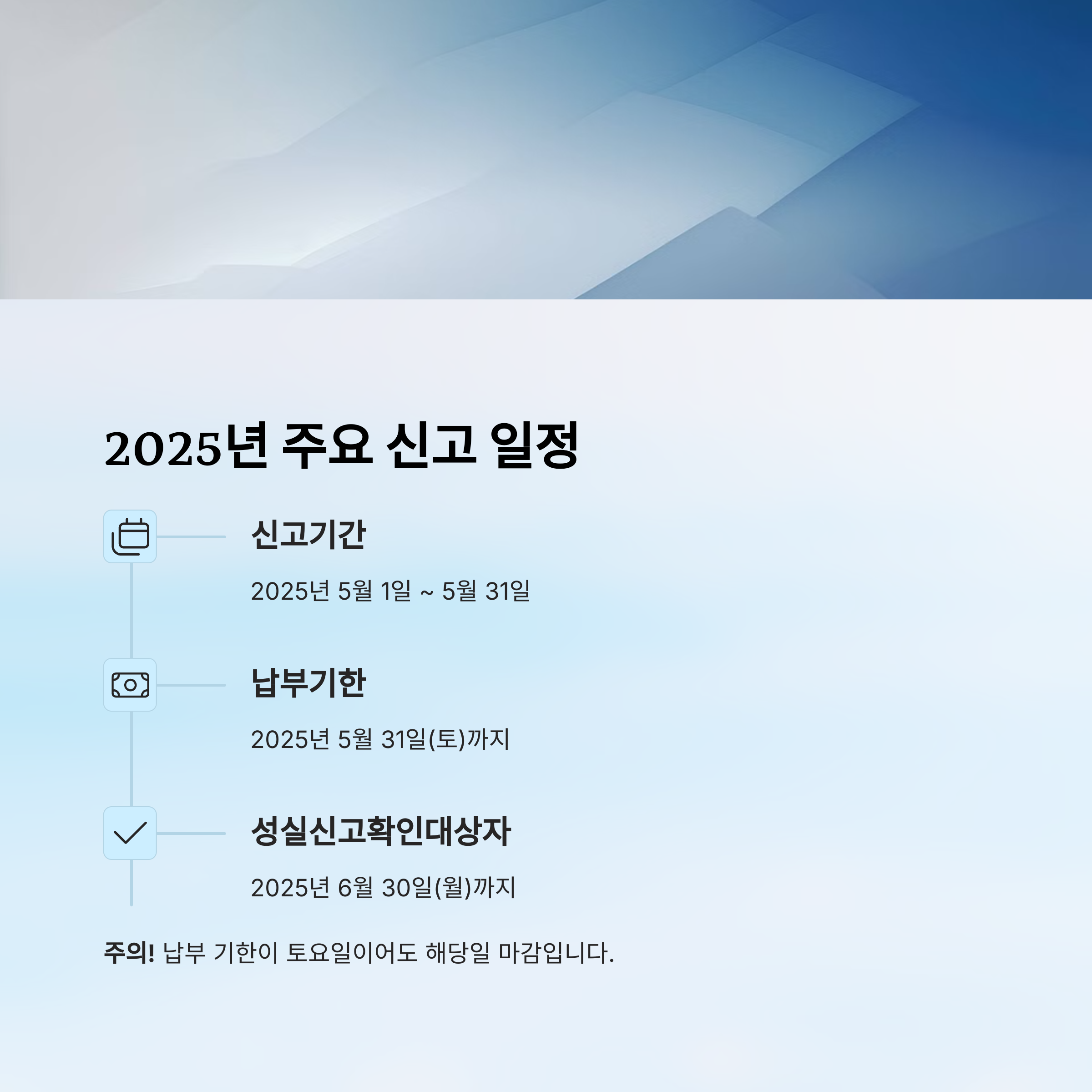 아래는 2025년 종합소득세 관련 주요 일정입니다.