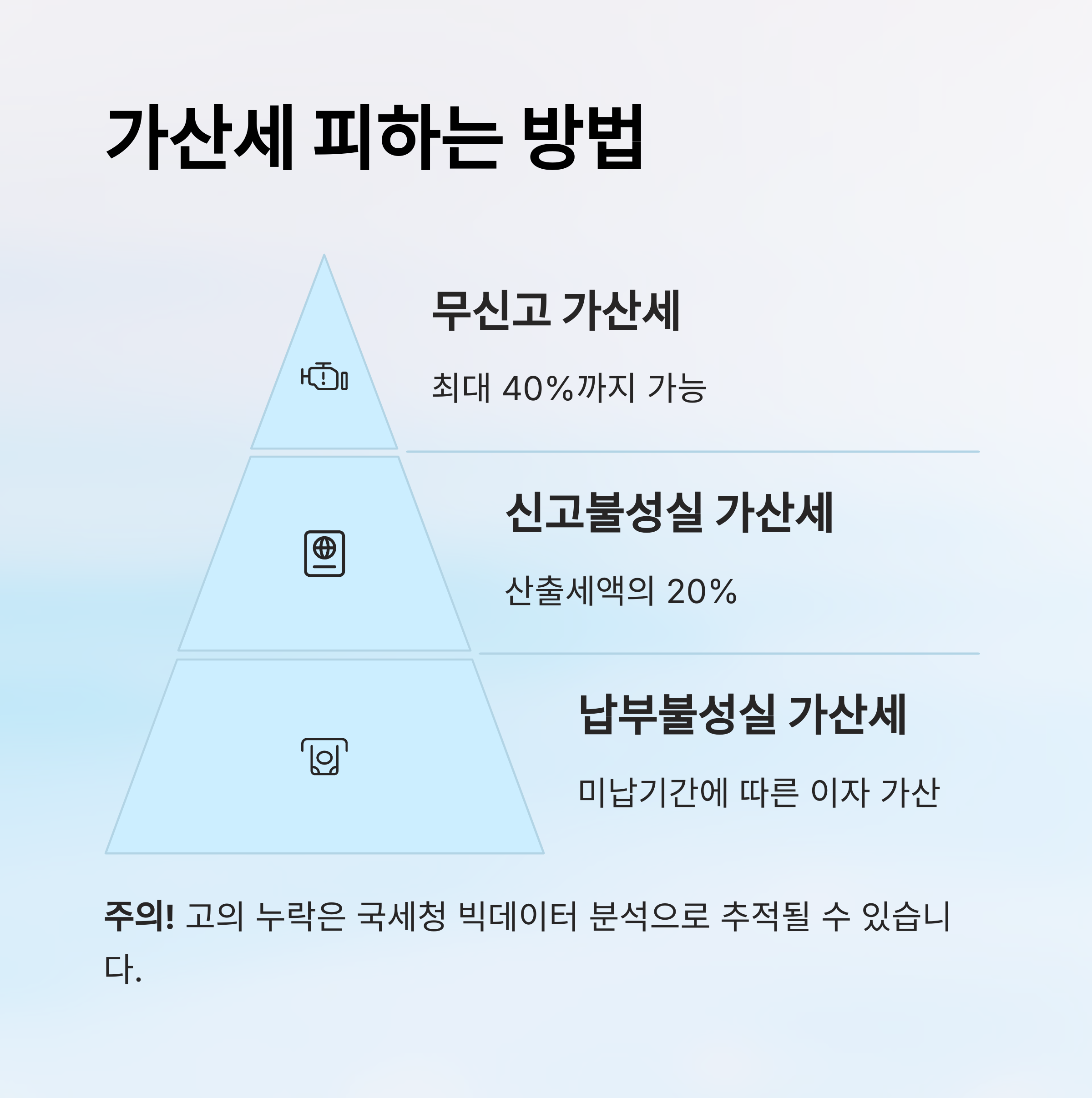 - 무신고 가산세: 20% 이상 최대 40%까지 가능