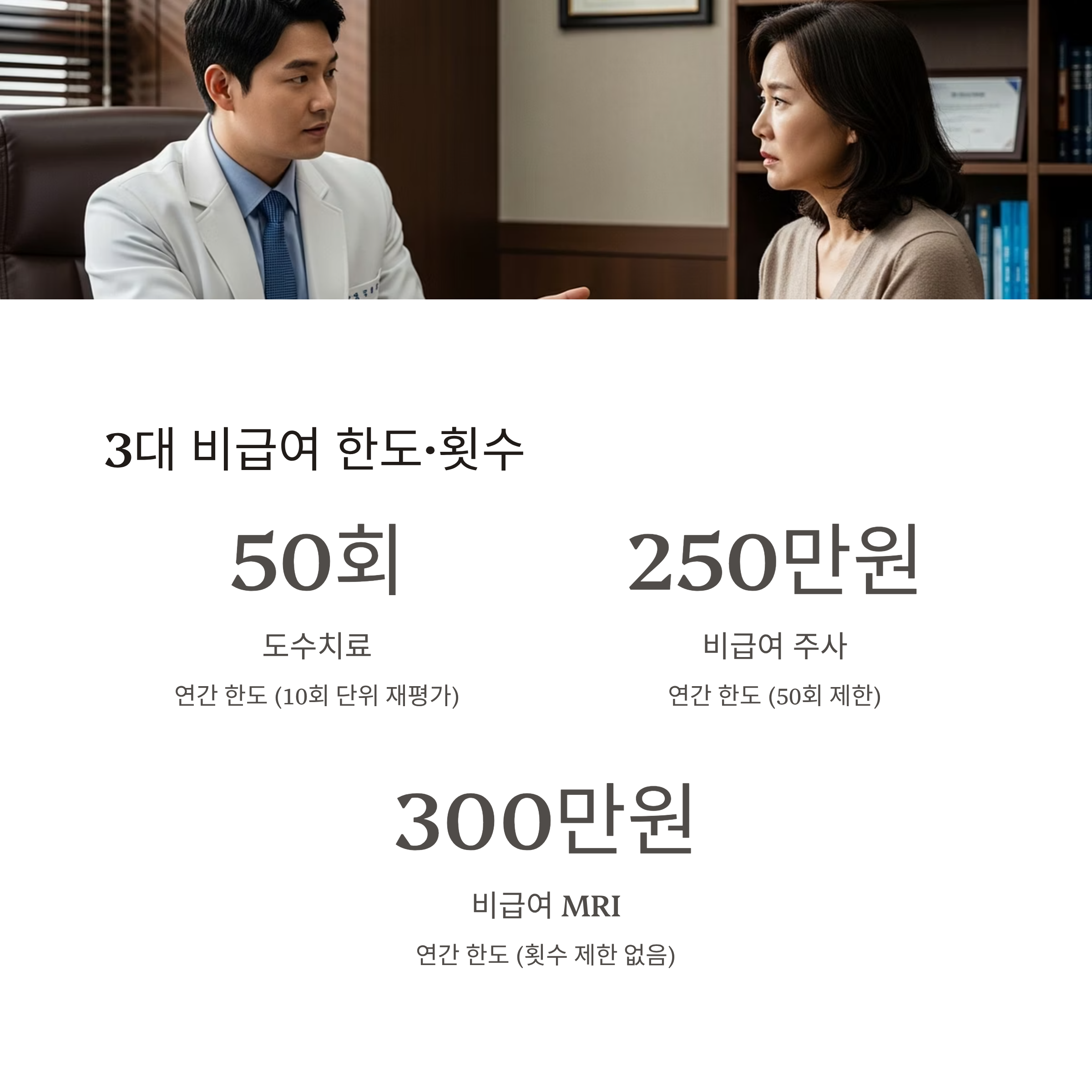 - 비급여 MRI: 연 300만원(횟수 제한 없음)
