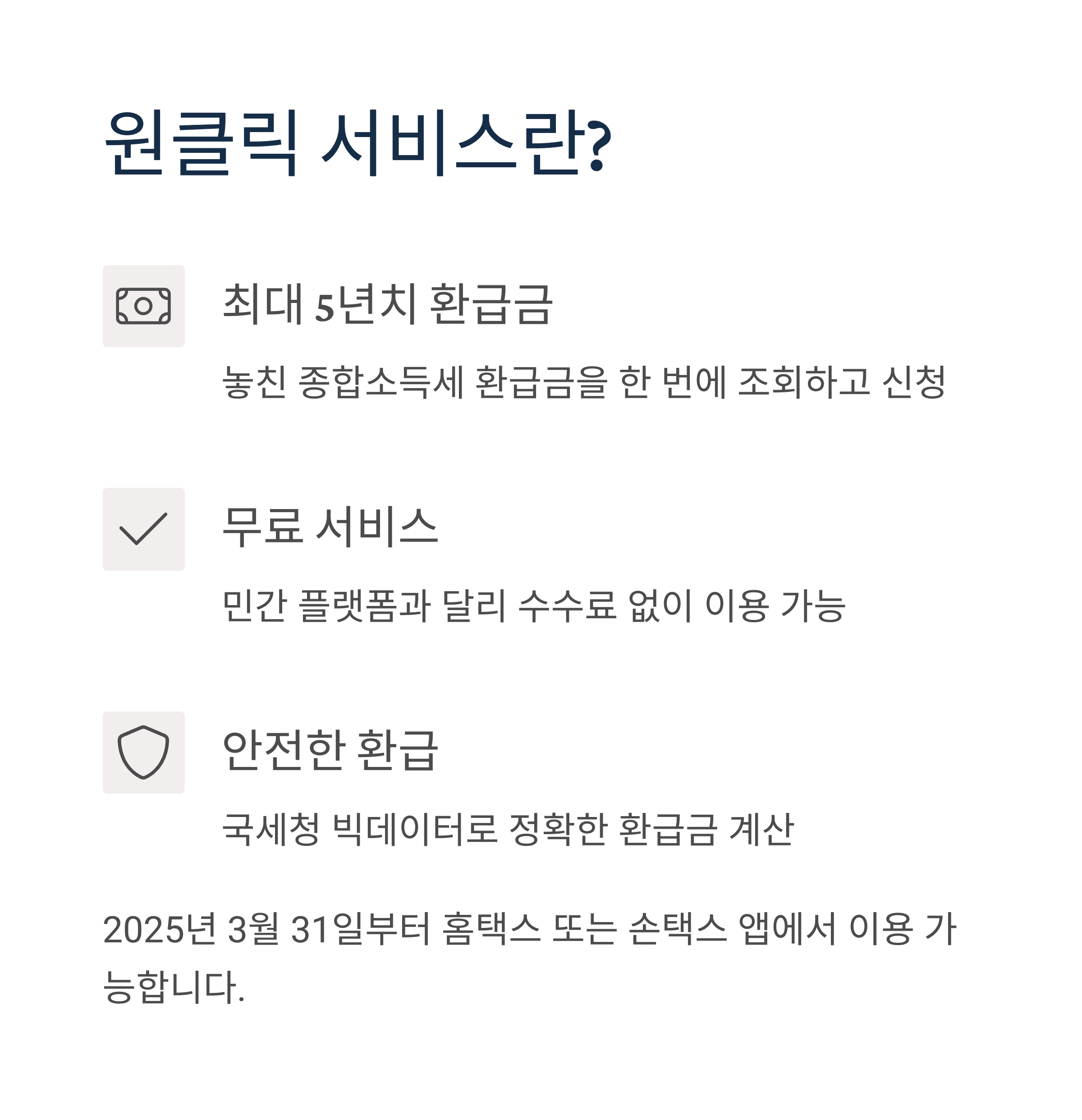 📌 원클릭 서비스란? – 5년치 환급금, 클릭 한 번으로 신청 완료!