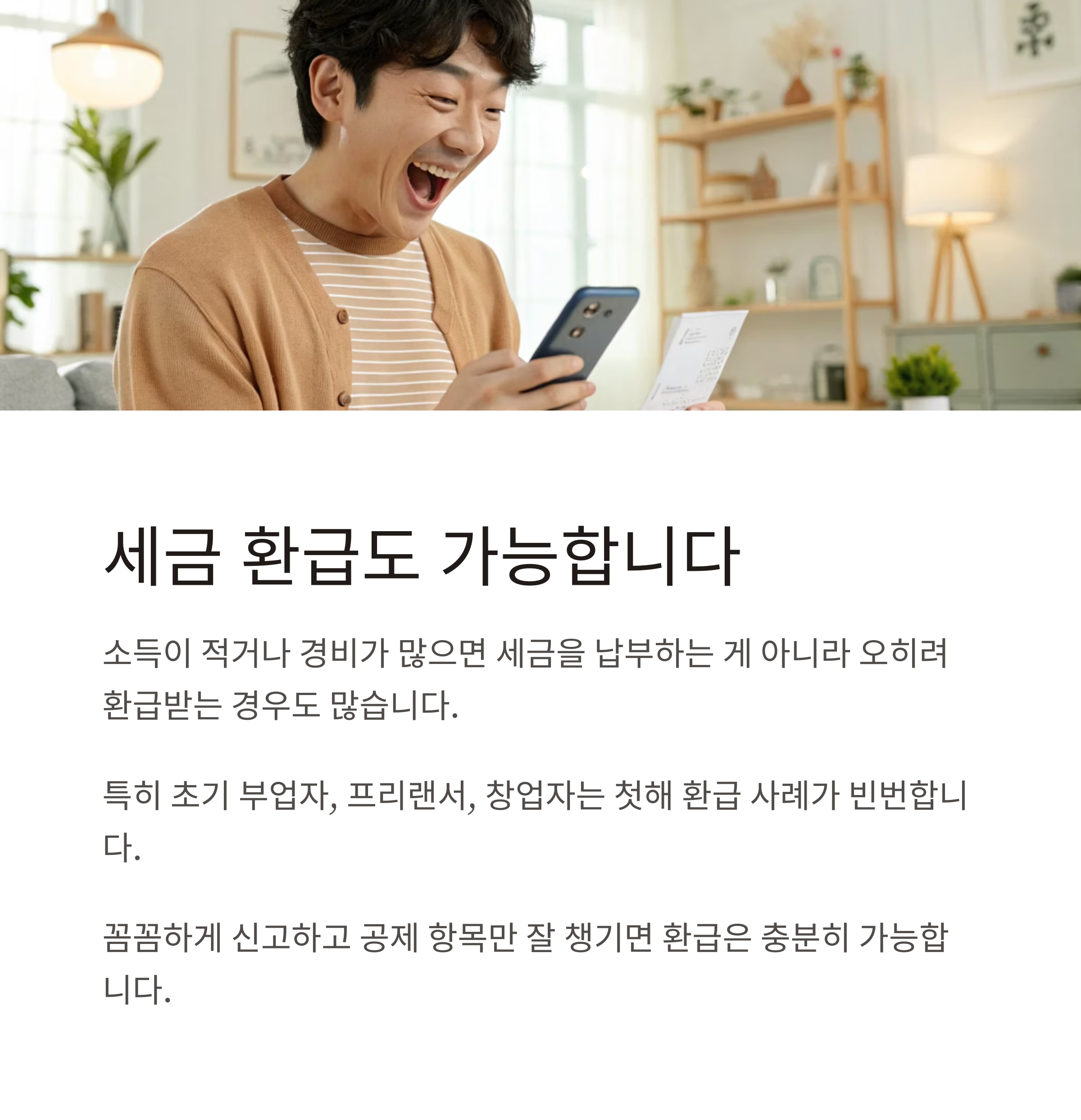 특히 초기 부업자, 프리랜서, 창업자는 첫해 환급 사례가 빈번합니다.