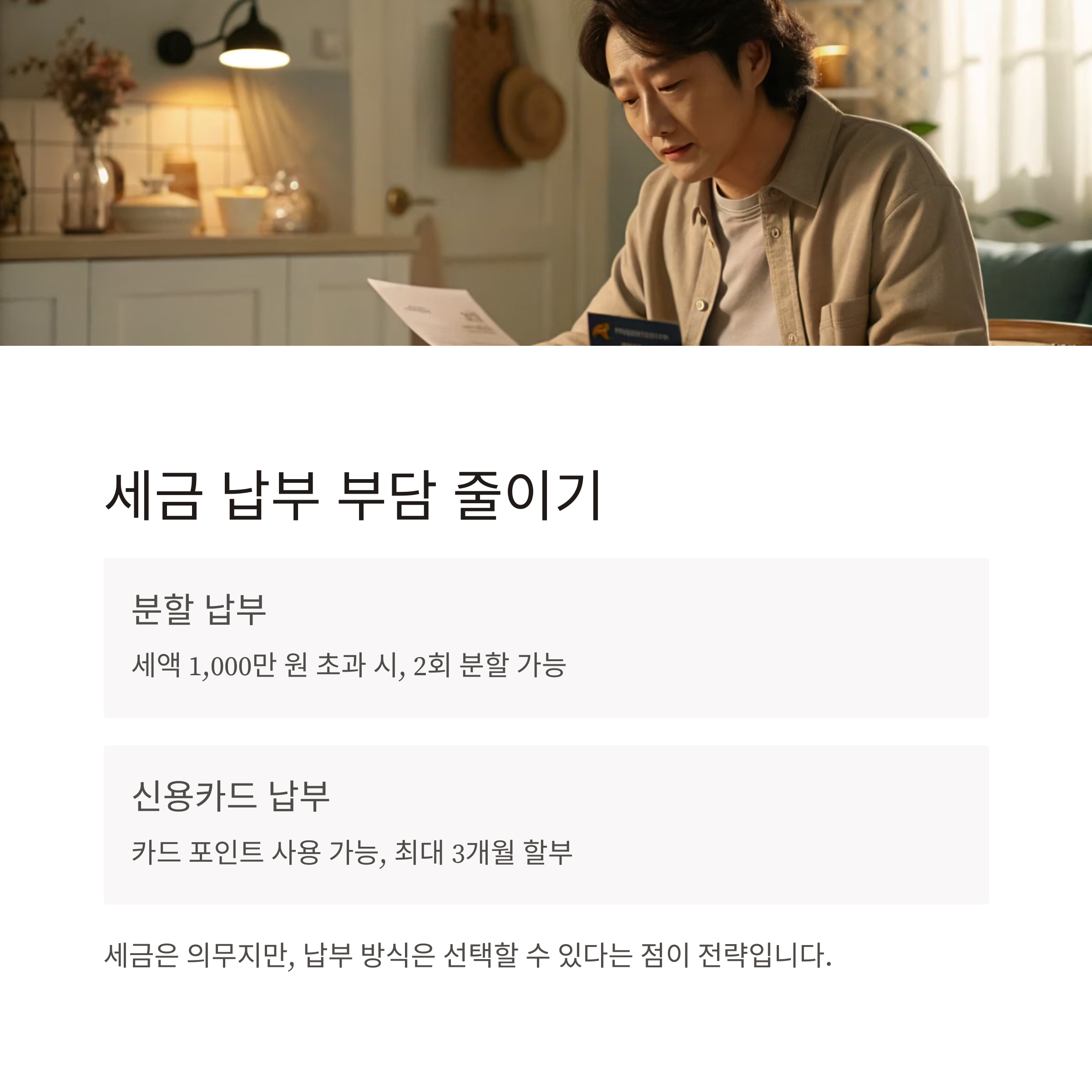 세금은 의무지만, 납부 방식은 선택할 수 있다는 점이 전략입니다.