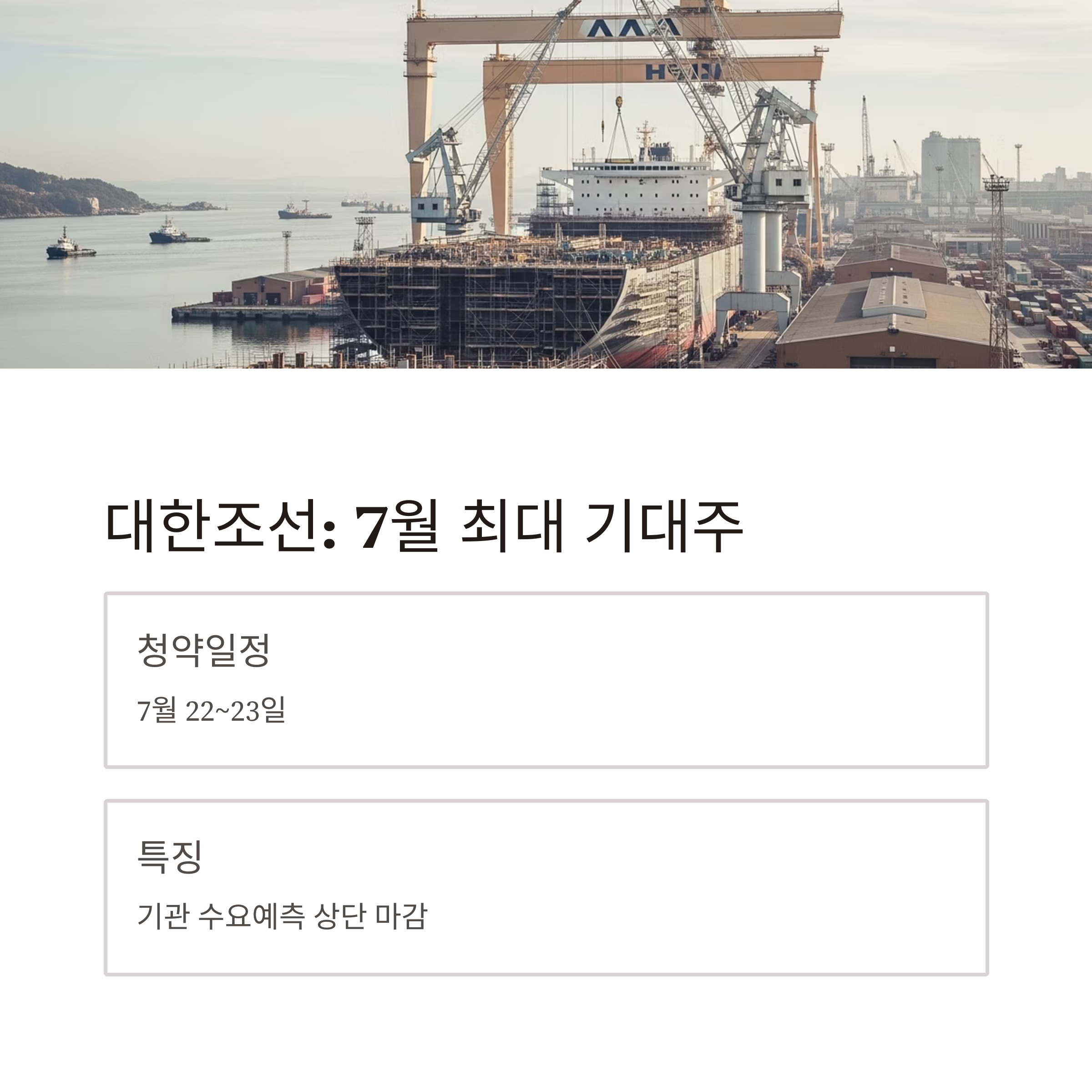대한조선, 7월 하이라이트 대어급 종목