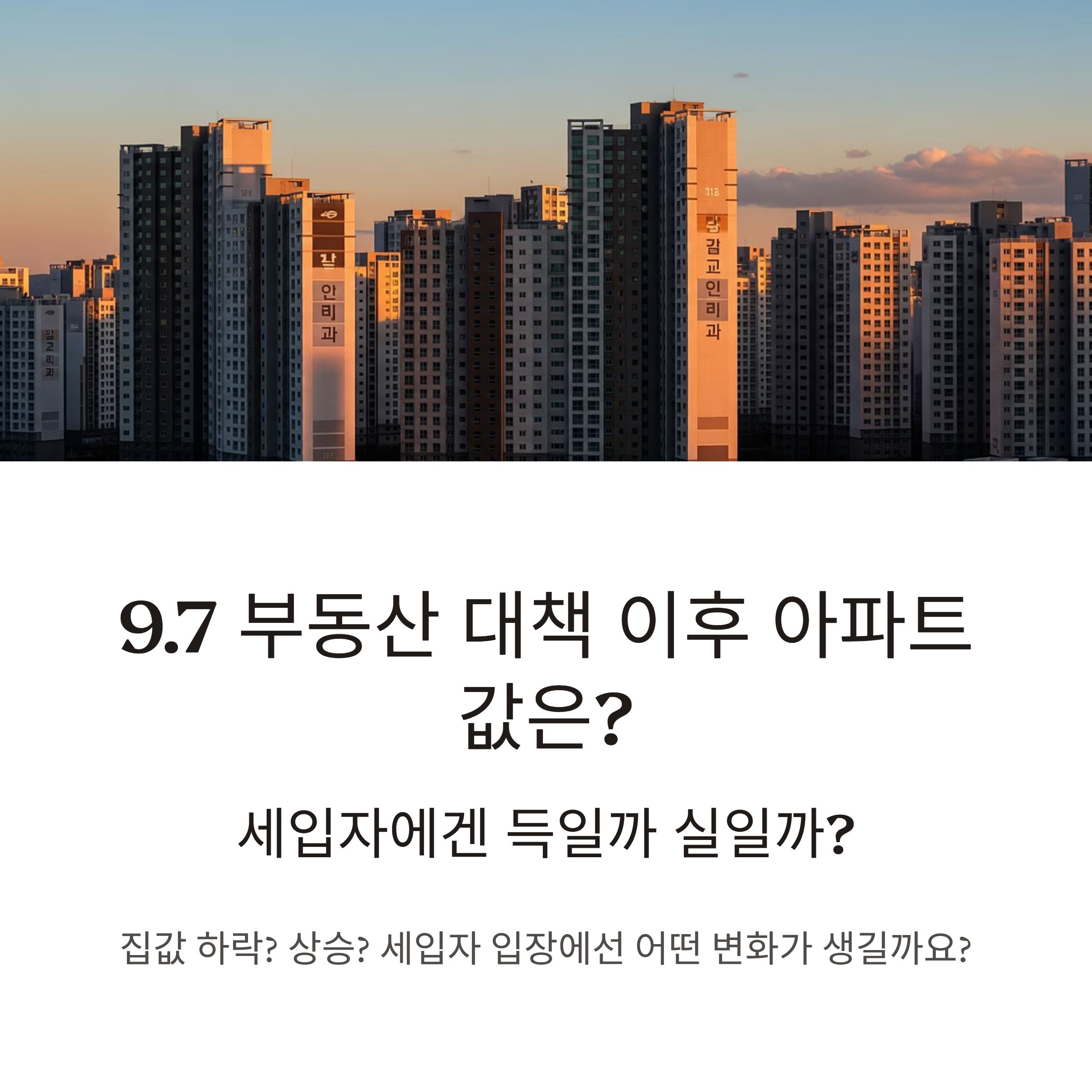 9.7 부동산 대책 이후 아파트값 하락할까? 상승할까? 세입자에게 득일까 실일까?