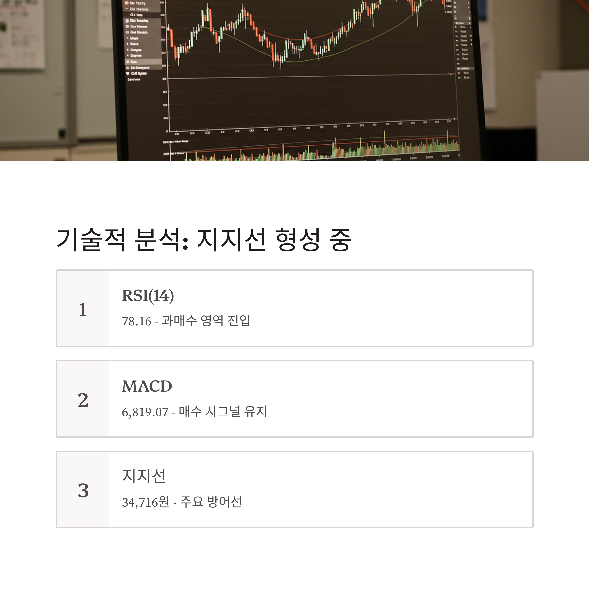 기술적 분석: 단기 조정 후 지지선 부근 유지