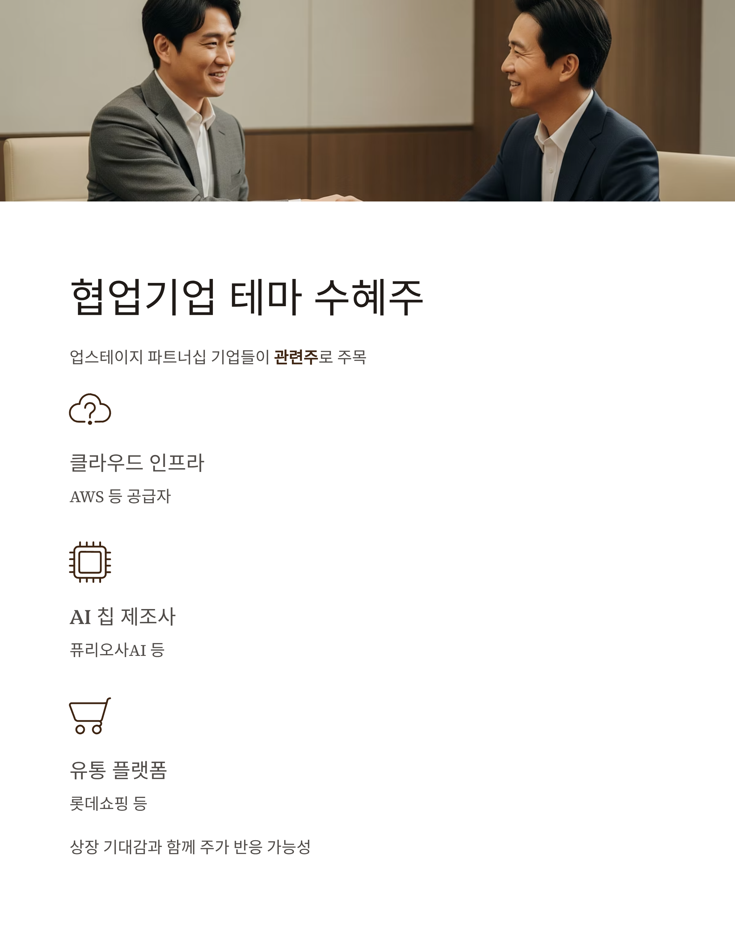 특히 일부 기업은 클라우드 인프라 공급자, AI 칩 제조사, 유통 플랫폼 등으로 업스테이지의 사업 성공과 직간접적인 연관을 갖고 있기에, 상장 기대감과 함께 주가 반응을 보일 수 있습니다.