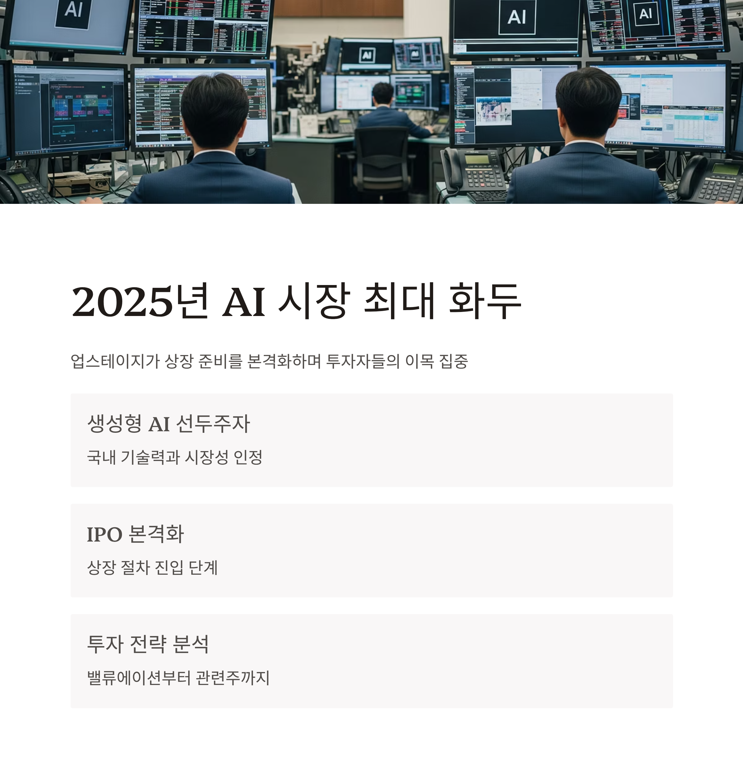 2025년 들어 인공지능(AI) 시장의 최대 화두 중 하나는 단연 ‘업스테이지(Upstage)’입니다. 국내 생성형 AI 분야에서 기술력과 시장성을 인정받은 이 스타트업은 상장 준비를 본격화하고 있으며, 벌써부터 투자자들의 이목을 집중시키고 있습니다. 이번 글에서는 업스테이지의 상장 이슈, 밸류에이션, 관련주 전략까지 세 단계로 나눠 집중 분석합니다.