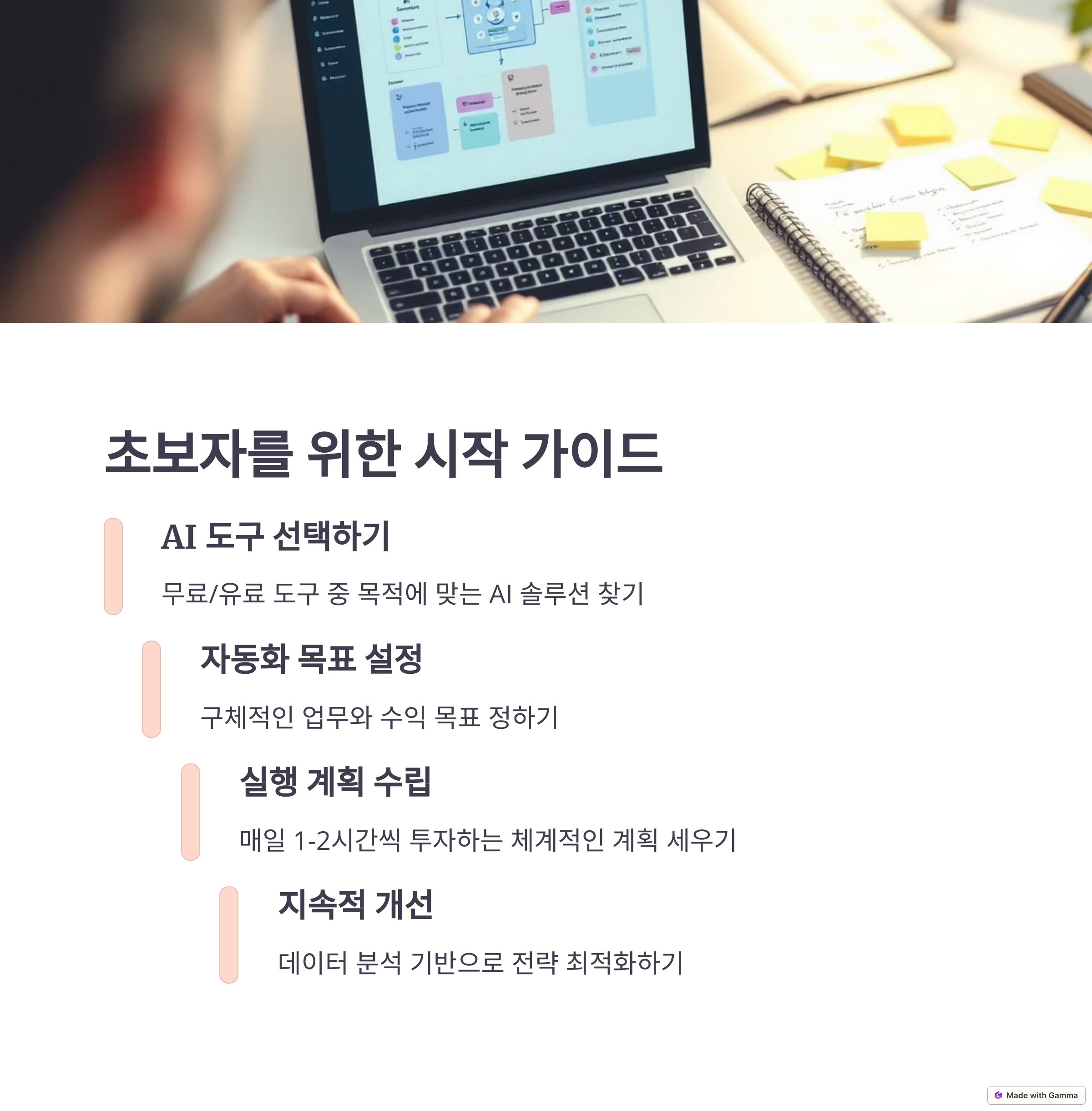 AI 자동화 부업은 단순히 유행을 따르기보다, 자신의 성향과 목표에 맞는 방향 설정이 중요합니다. 꾸준히 콘텐츠를 제작하고, 시장 흐름을 분석하며, 도구를 효율적으로 활용하는 전략이 수익화의 핵심입니다. 무조건적인 수익보다는 지속가능한 구조를 갖추는 것이 핵심입니다.