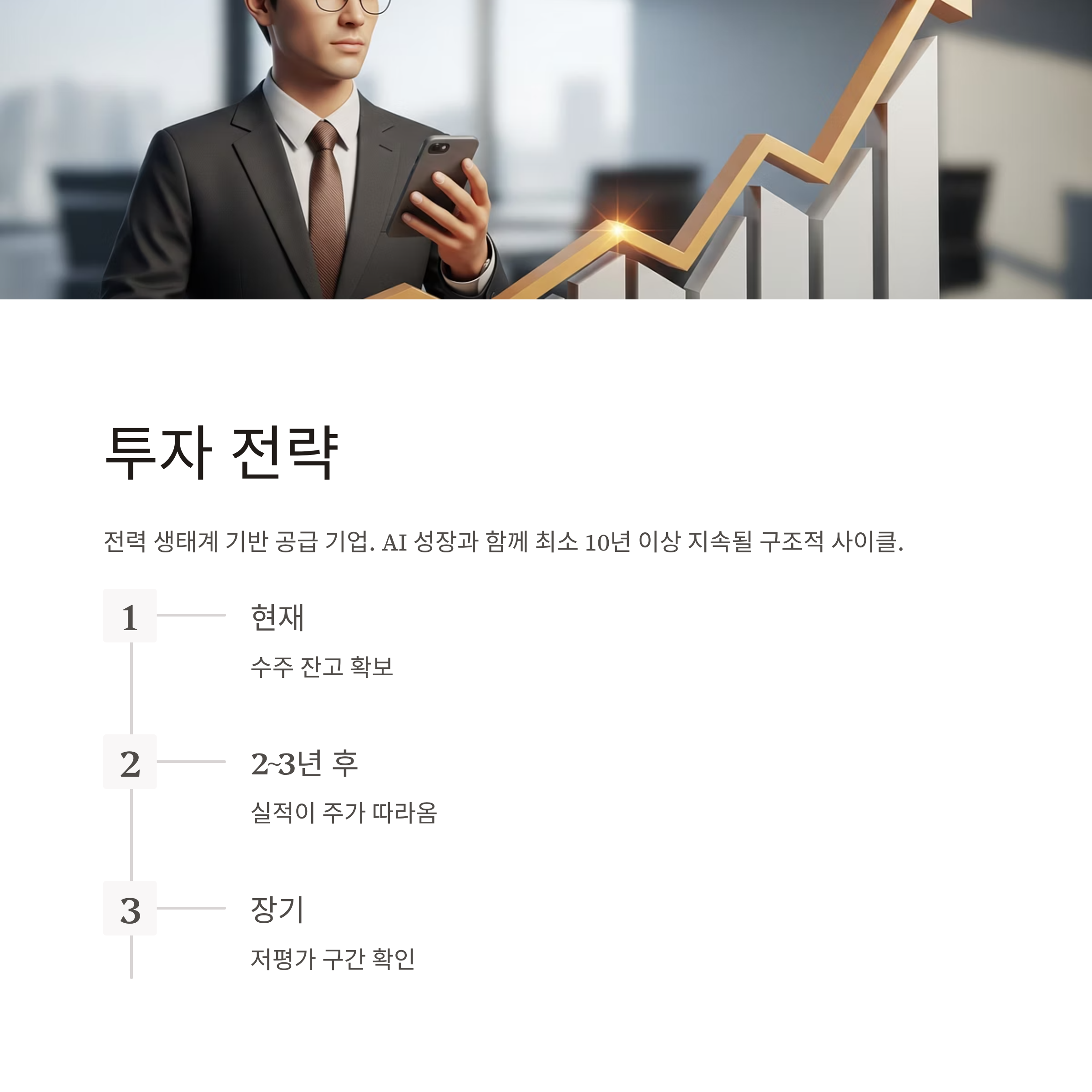 이들 3사는 단기 테마주가 아닌, 전력 생태계의 기반을 공급하는 기업들입니다.