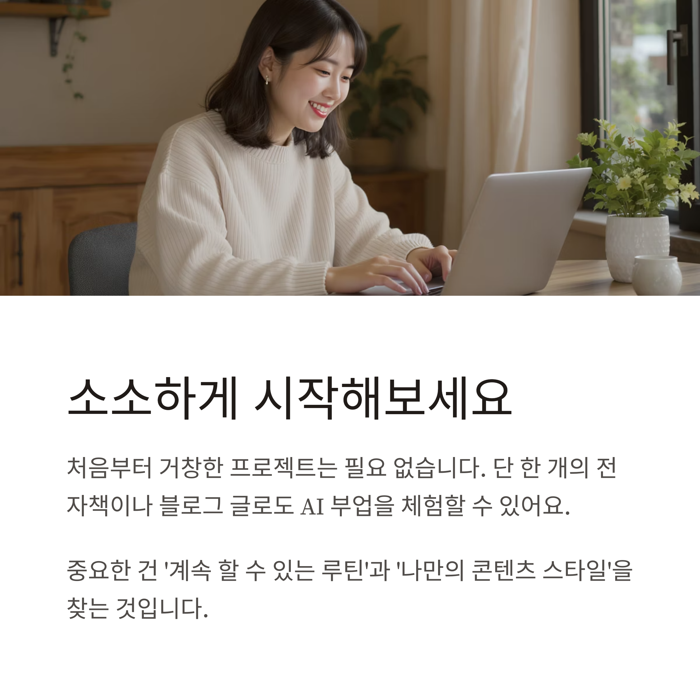 중요한 건 ‘계속 할 수 있는 루틴’과 ‘나만의 콘텐츠 스타일’을 찾는 것입니다.