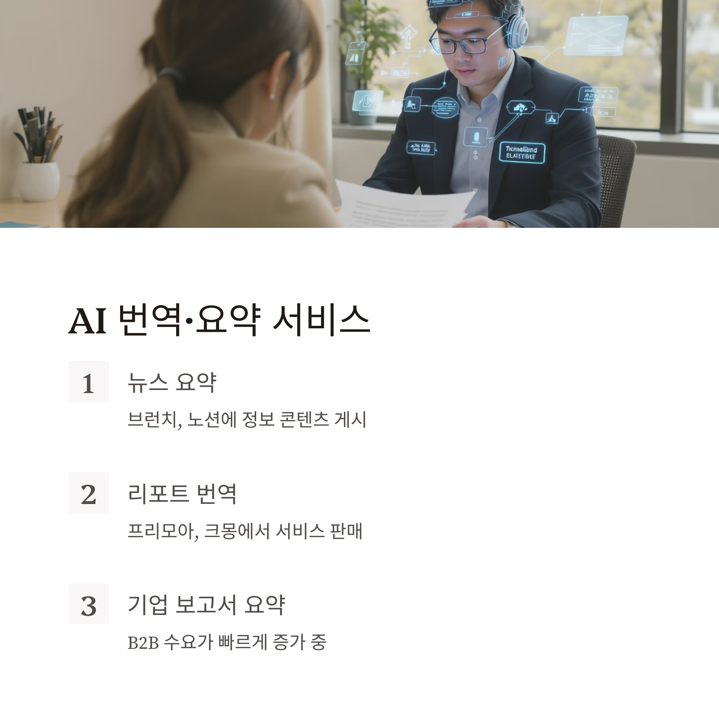 특히 뉴스 요약, 리포트 번역, 기업 보고서 요약 대행 등