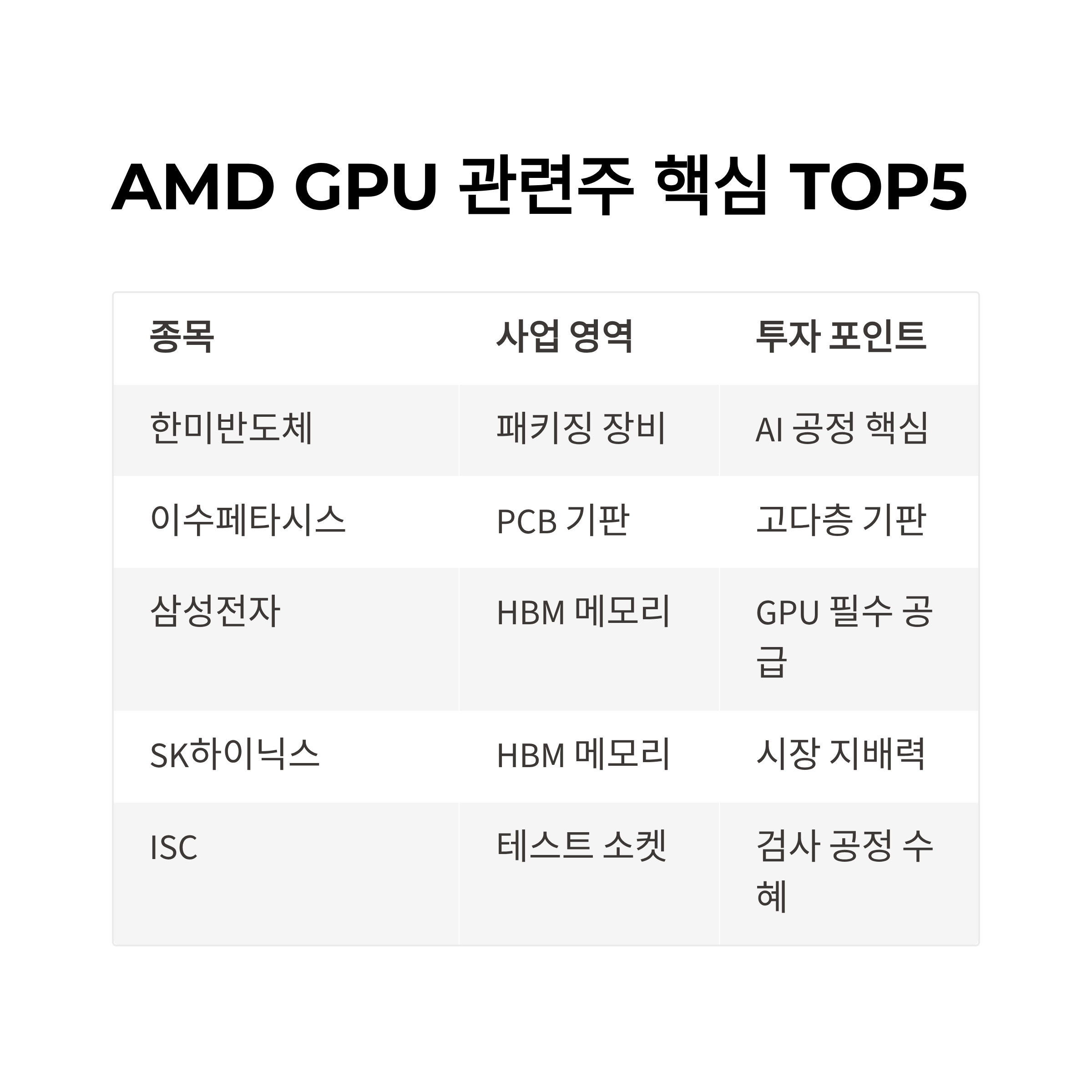 AMD GPU 관련주 TOP5 대장주 분석과 AI 반도체 투자 전략
