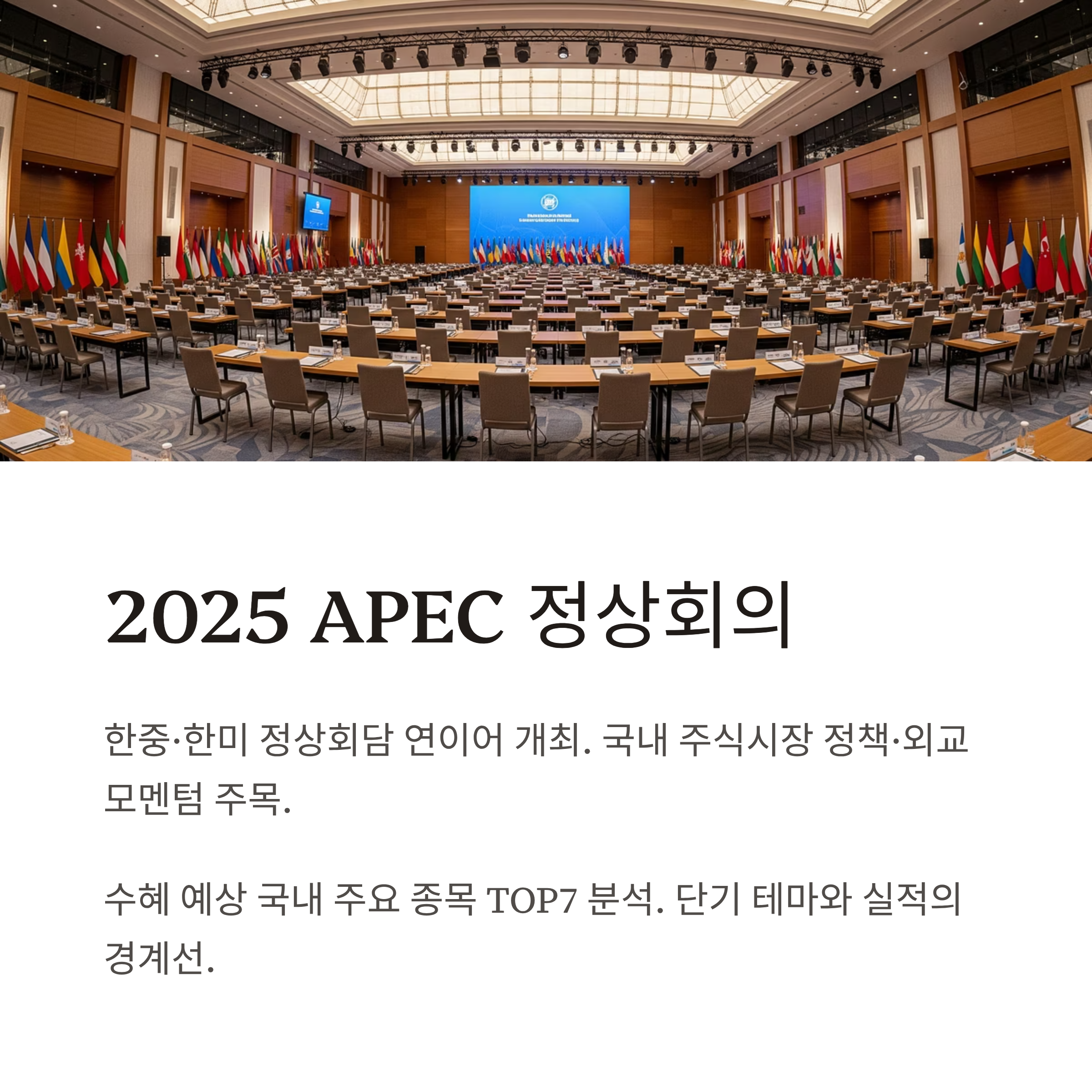 2025 APEC 정상회의와 함께 한중·한미 정상회담이 연이어 개최되면서, 국내 주식시장은 이례적인 정책·외교 모멘텀에 주목하고 있습니다.