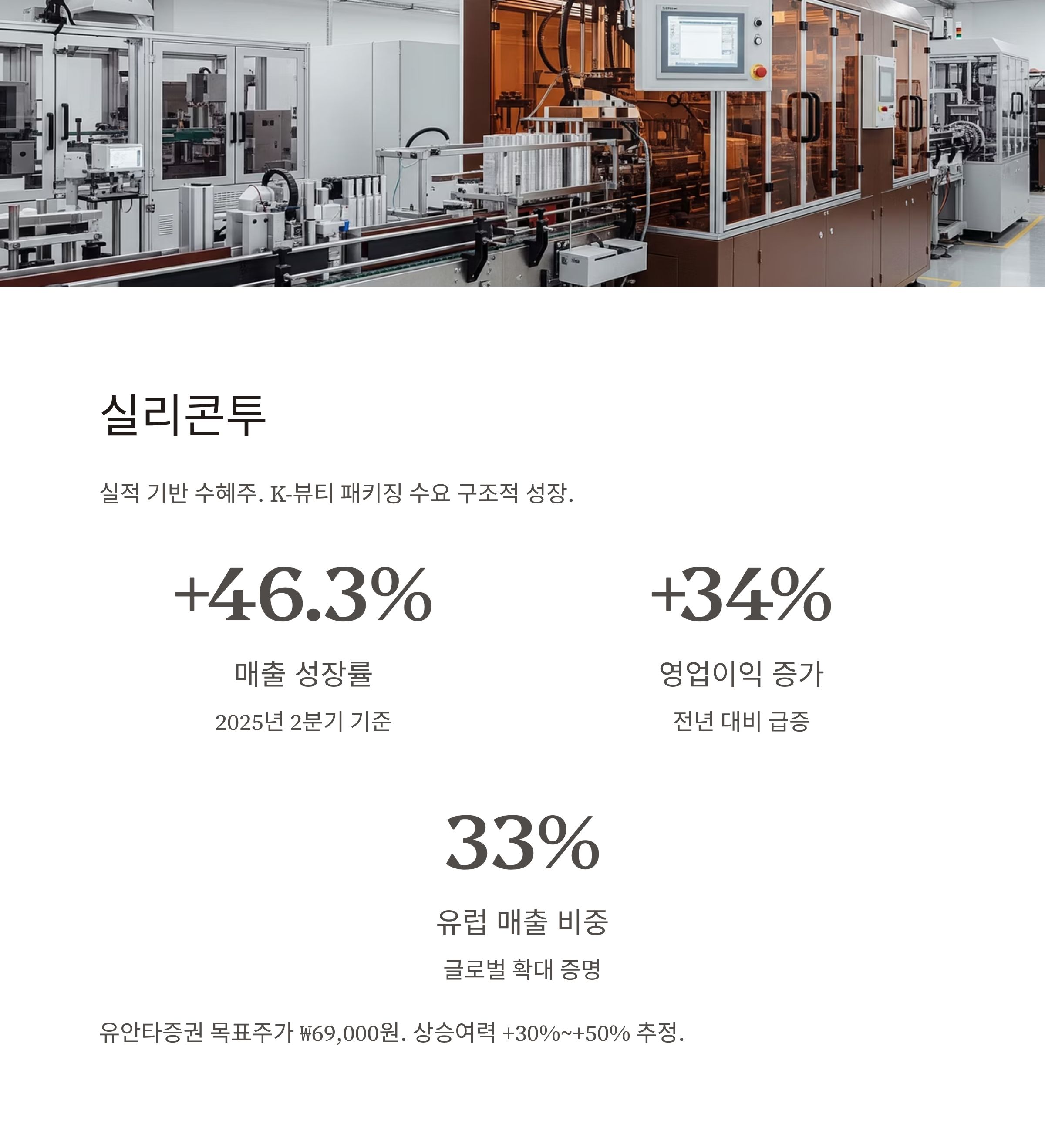 K-뷰티 패키징 수요는 APEC 이후 지속될 수 있는 구조적 성장 테마로 평가되며, 유안타증권은 목표주가를 ₩69,000원으로 상향 제시했습니다.