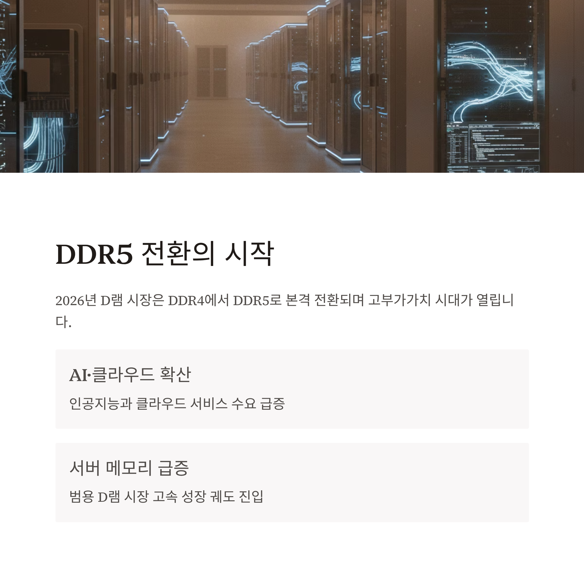 2026년은 D램 시장에 있어서 '표준의 전환'이 실적의 판도를 갈라놓는 해가 될 것입니다.