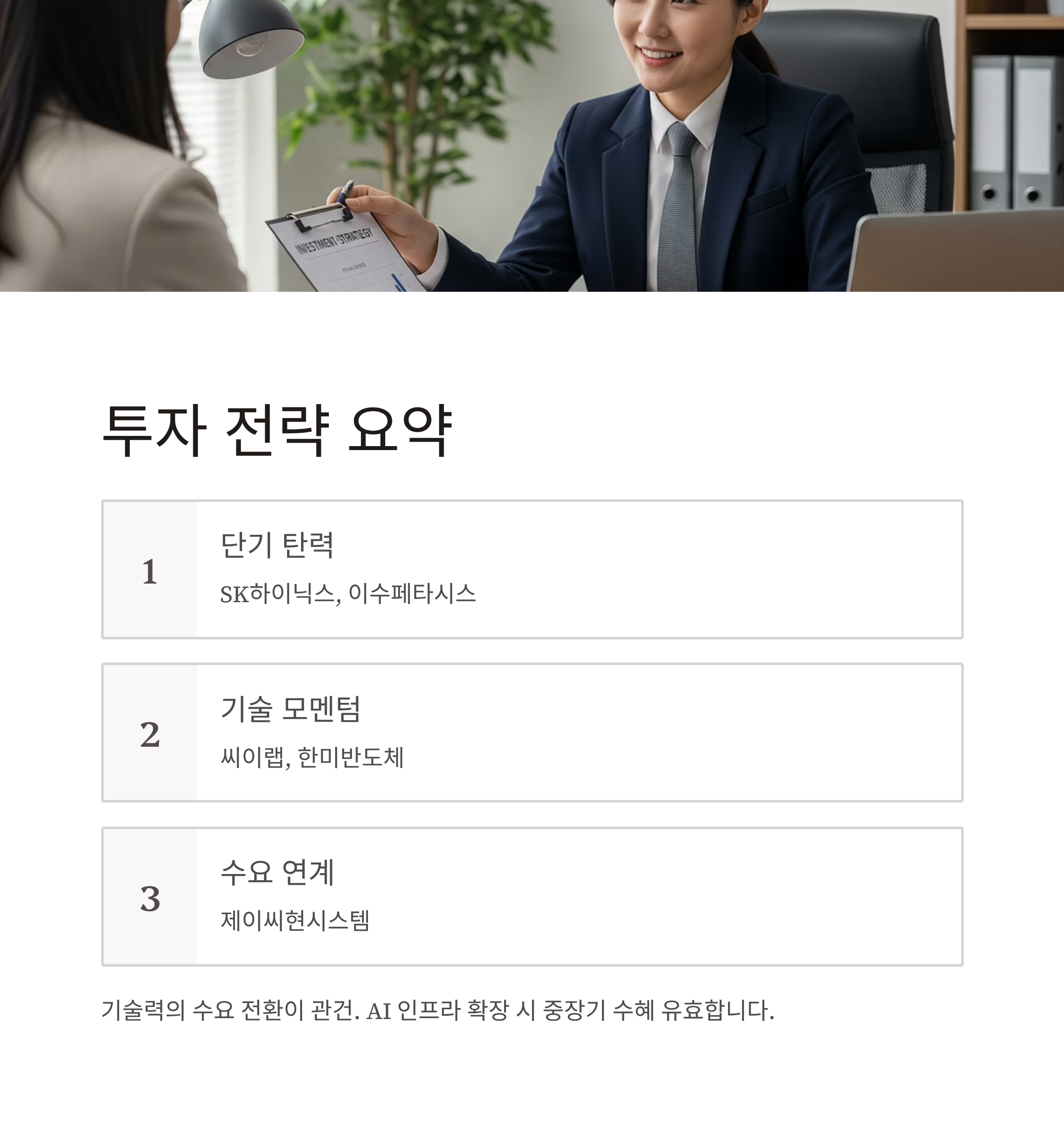 - 단기 탄력 기대 시 → SK하이닉스, 이수페타시스