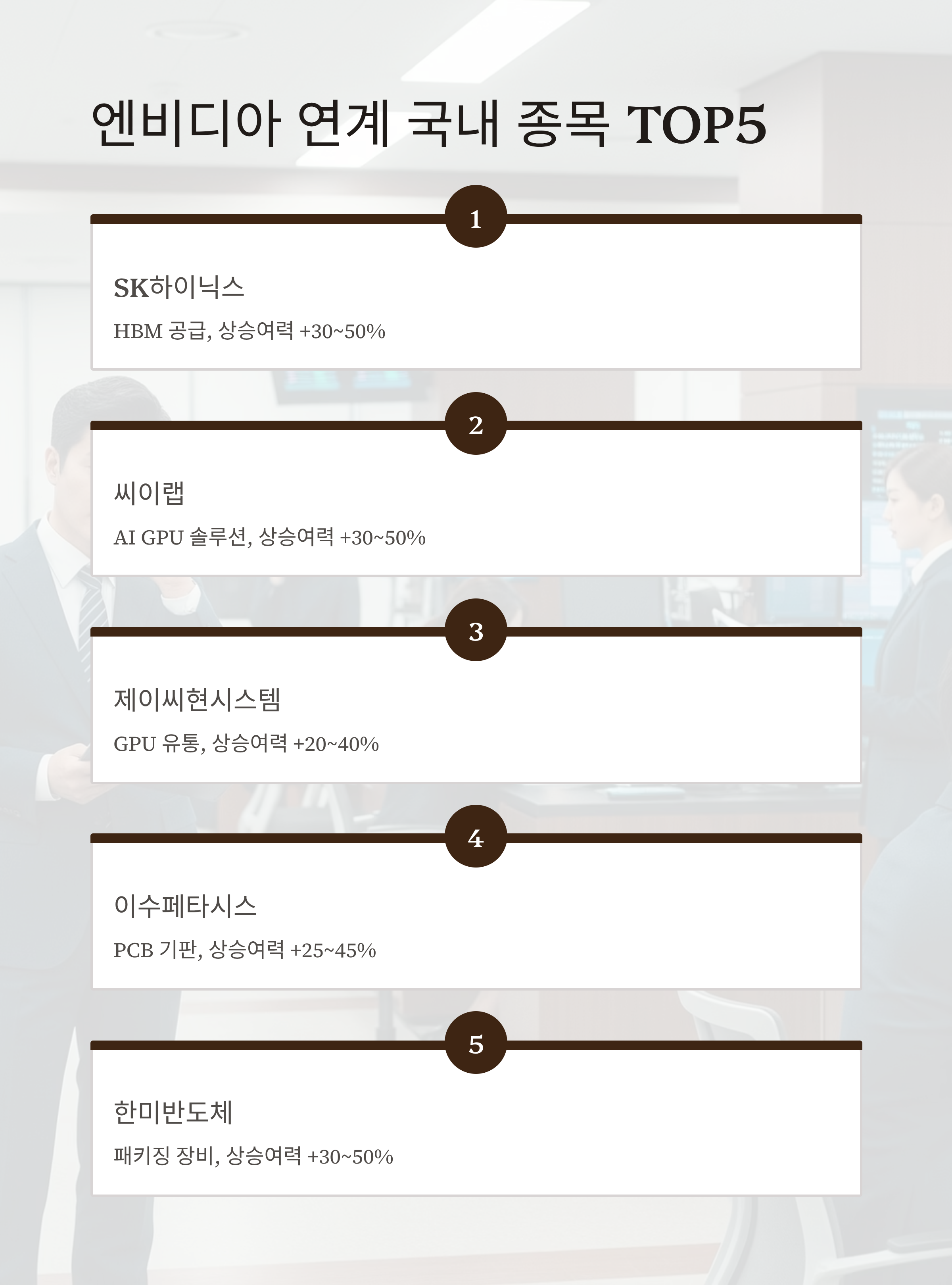 엔비디아 연계 국내 종목 TOP5 요약