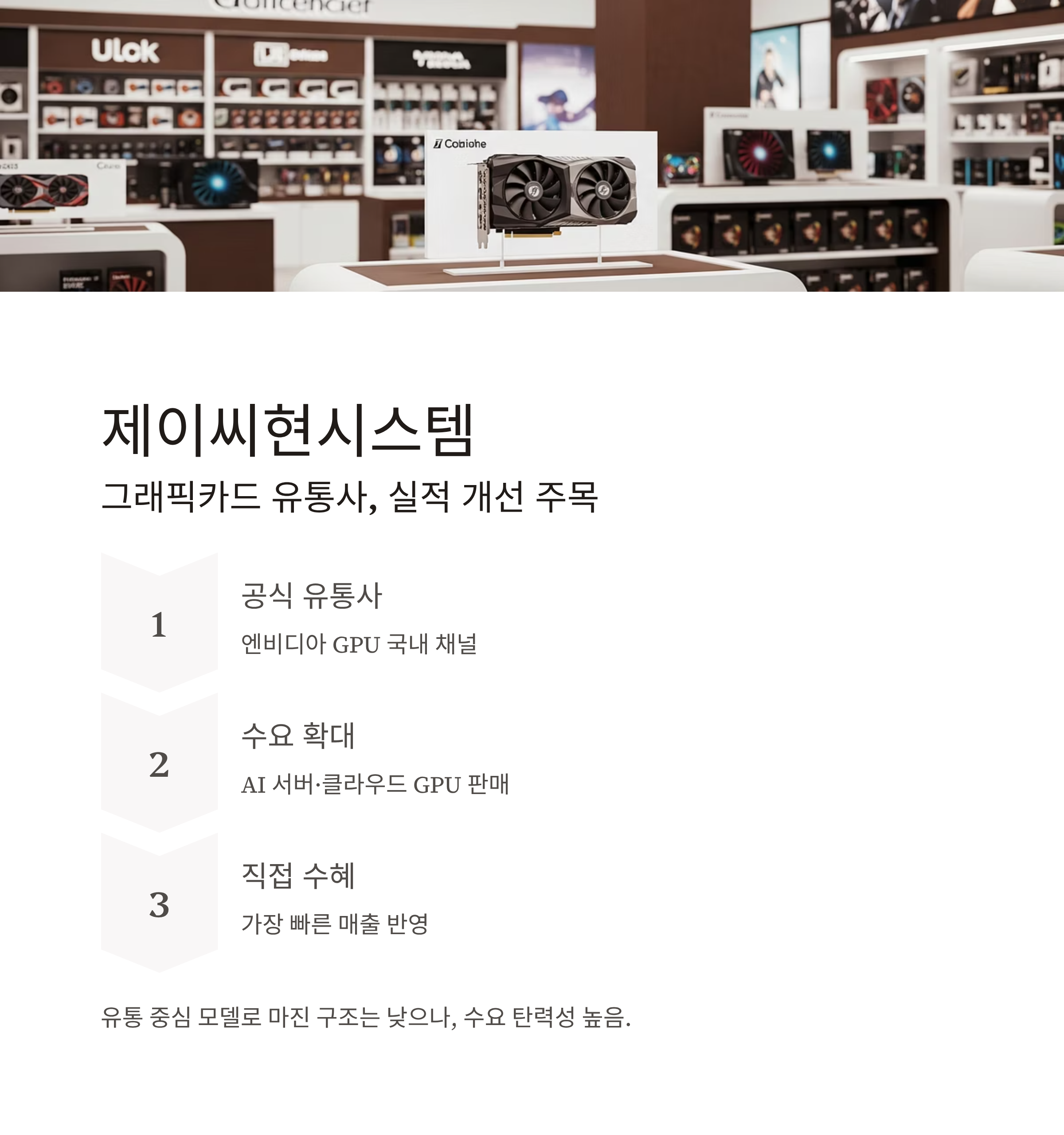 최근 AI 서버·클라우드 GPU 수요 증가로 그래픽카드 판매 확대 가능성이 부각되고 있으며,