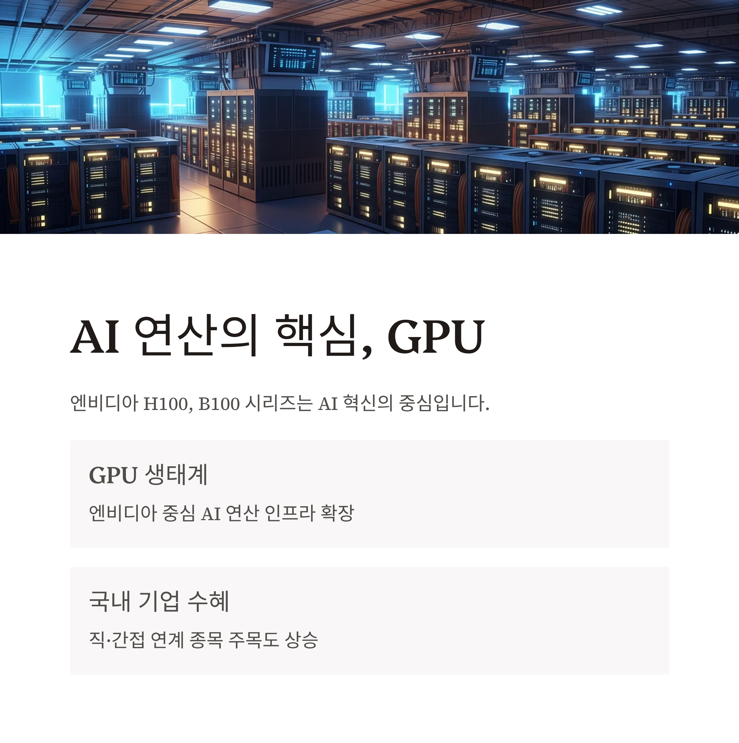 “AI GPU 연산 수요 확산” 트렌드에 직접 연결됩니다.