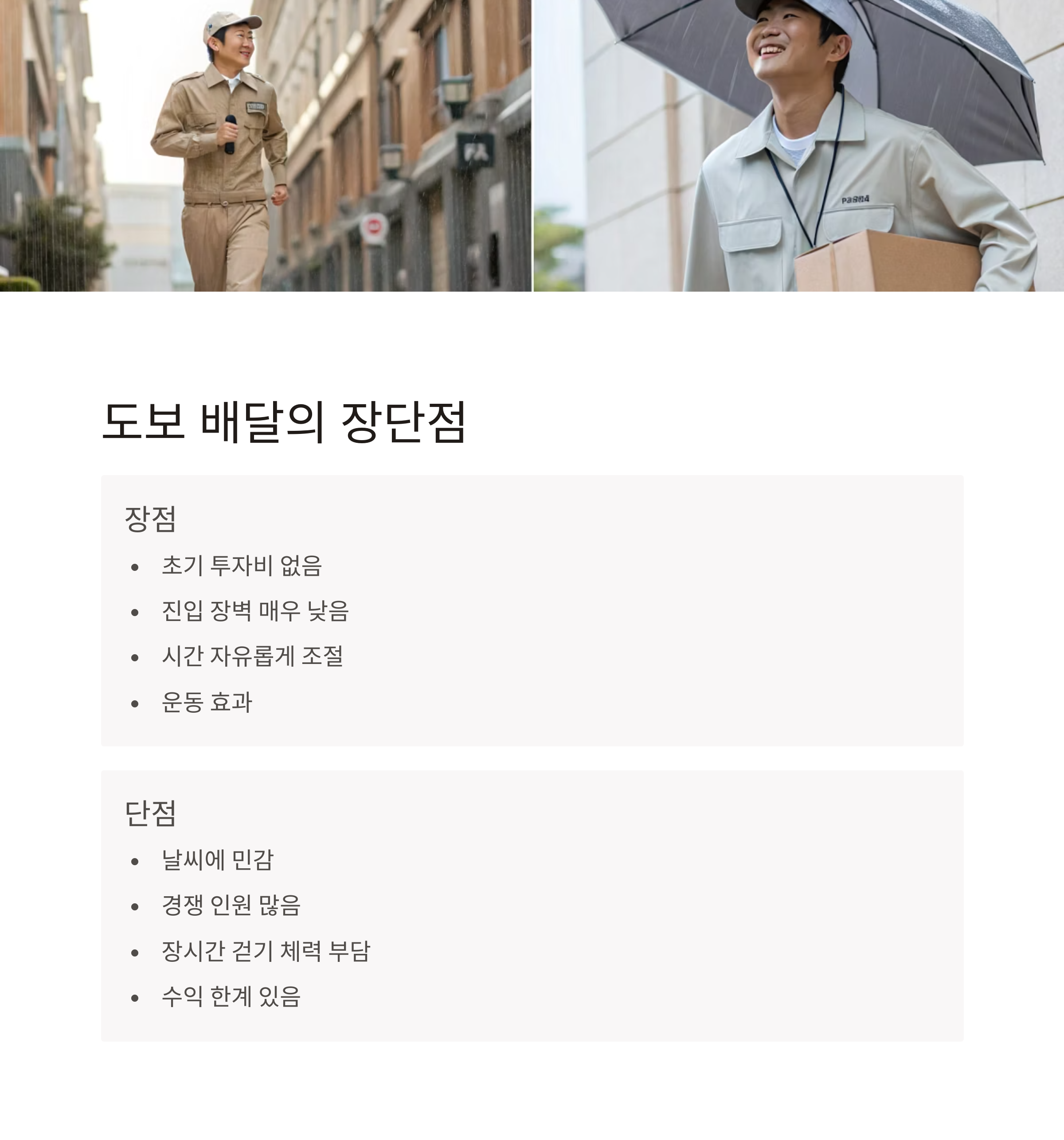 👟 도보 배달의 장단점 – 한눈에 비교하기