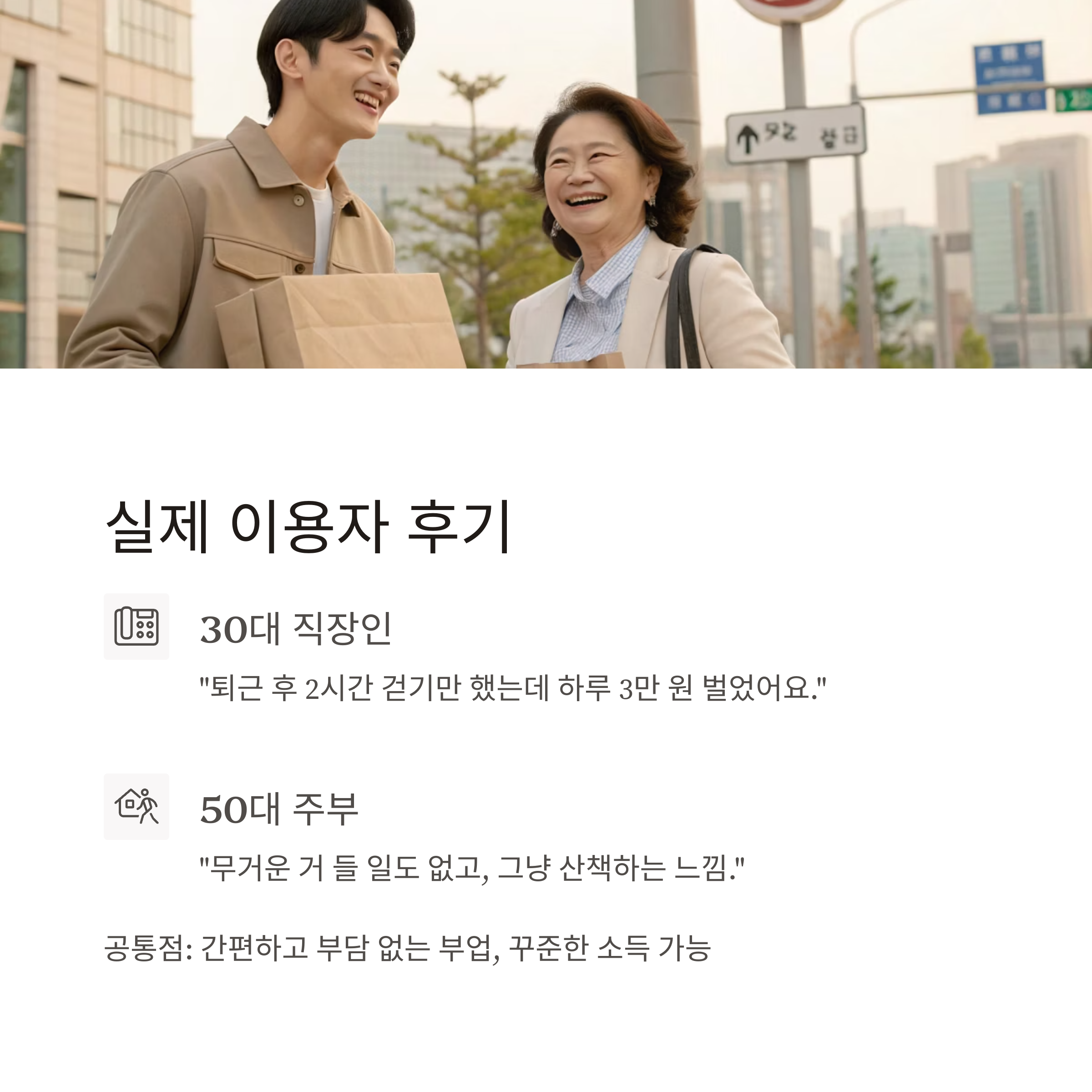 "퇴근 후 2시간 정도 걷기만 했는데 하루 3만 원 벌었어요.
