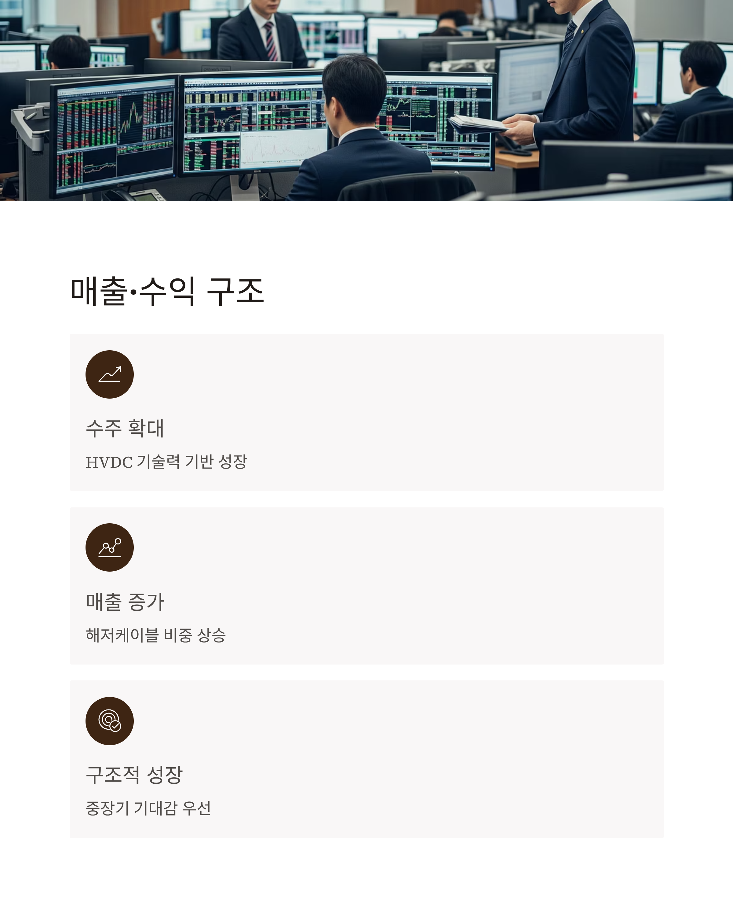 정확한 영업이익 수치는 공시 리포트 상 제한적으로 공개되어 있지만, HVDC 기술력 기반의 수주 확대 흐름과 함께 중장기적으로 매출 성장은 확실시된다는 평가가 많습니다.