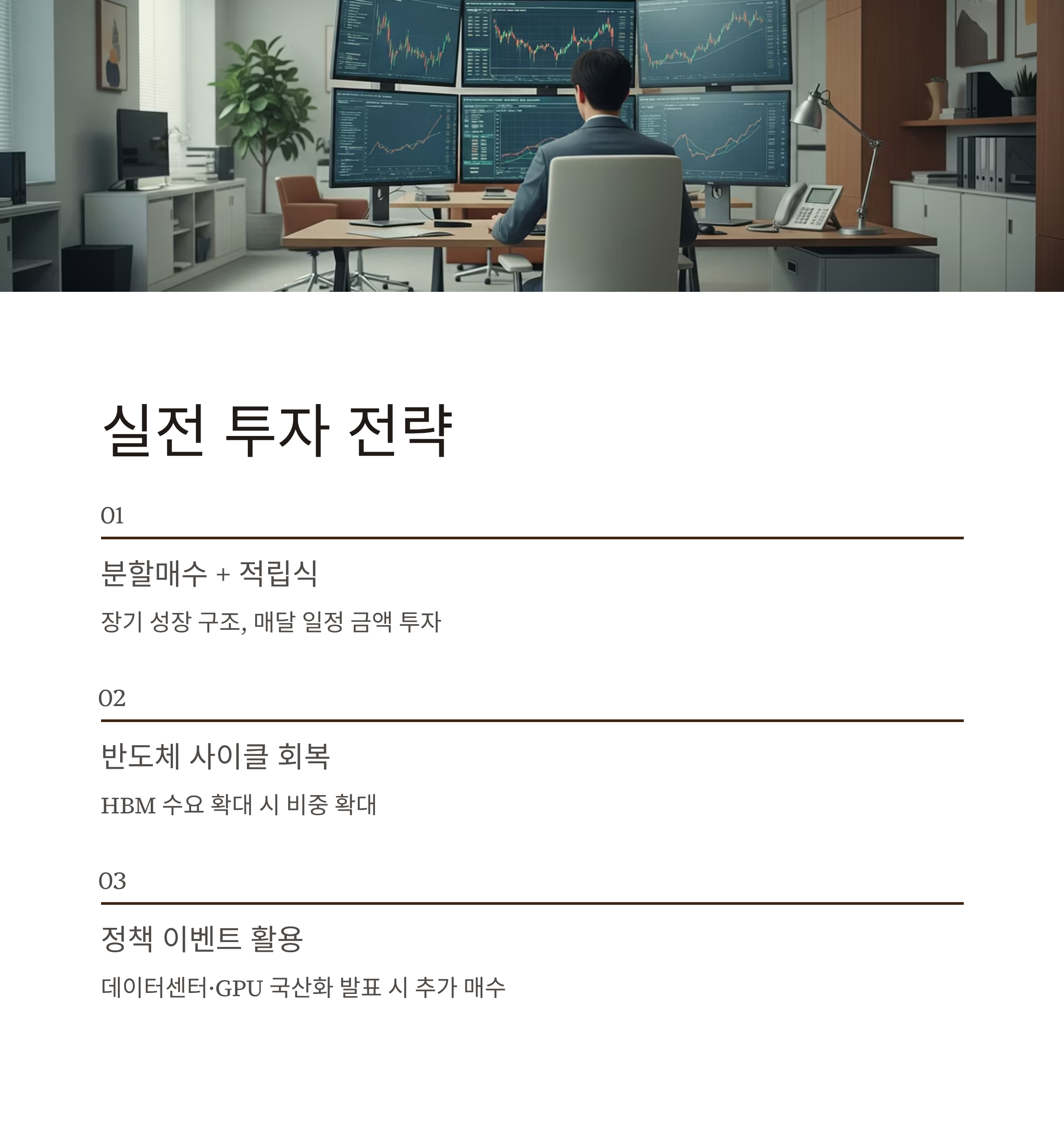 | 투자전략 | 정책 이벤트 활용 + 반도체 회복 시점 포착 |