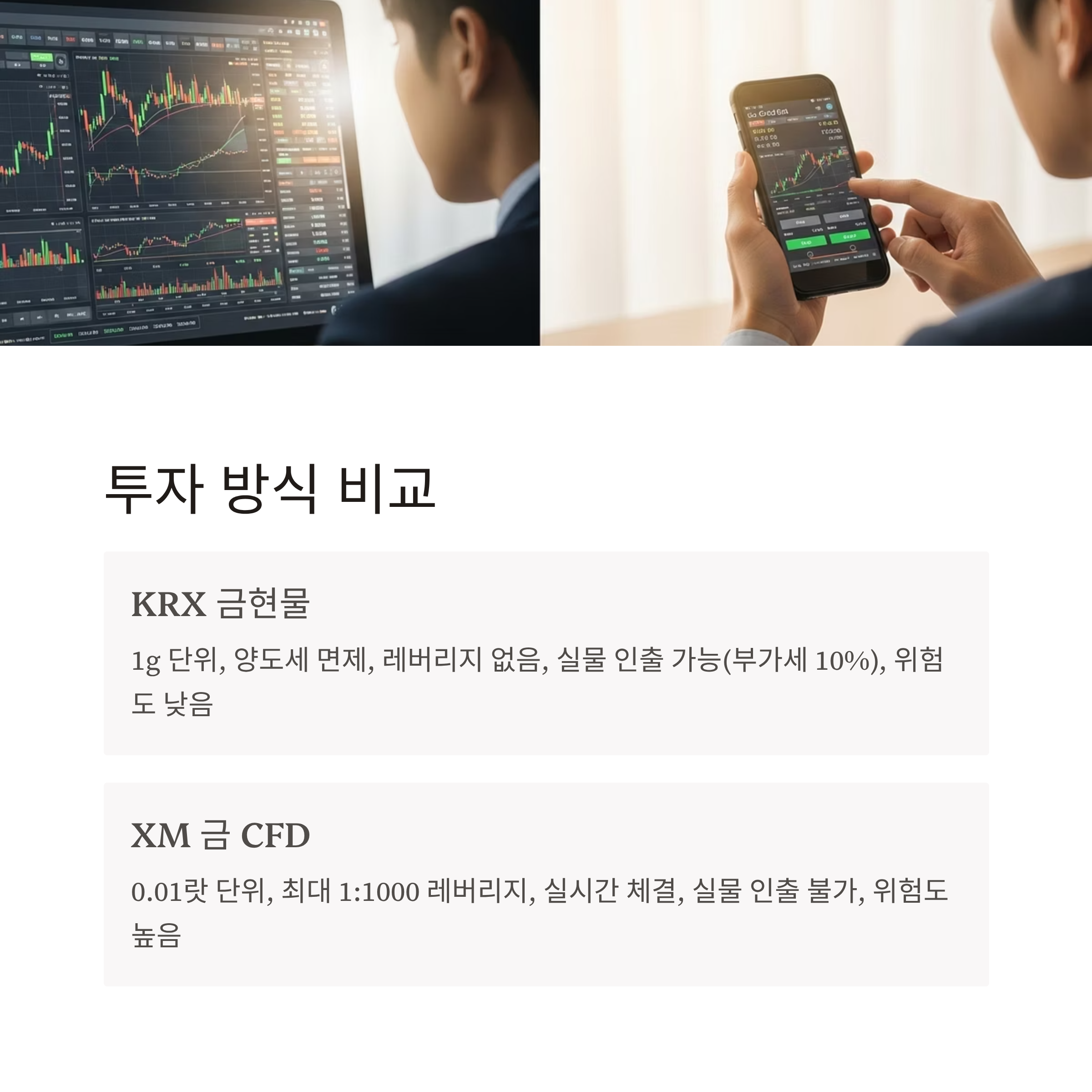 KRX 금투자와 XM 거래소 금(CFD) 매매 가이드