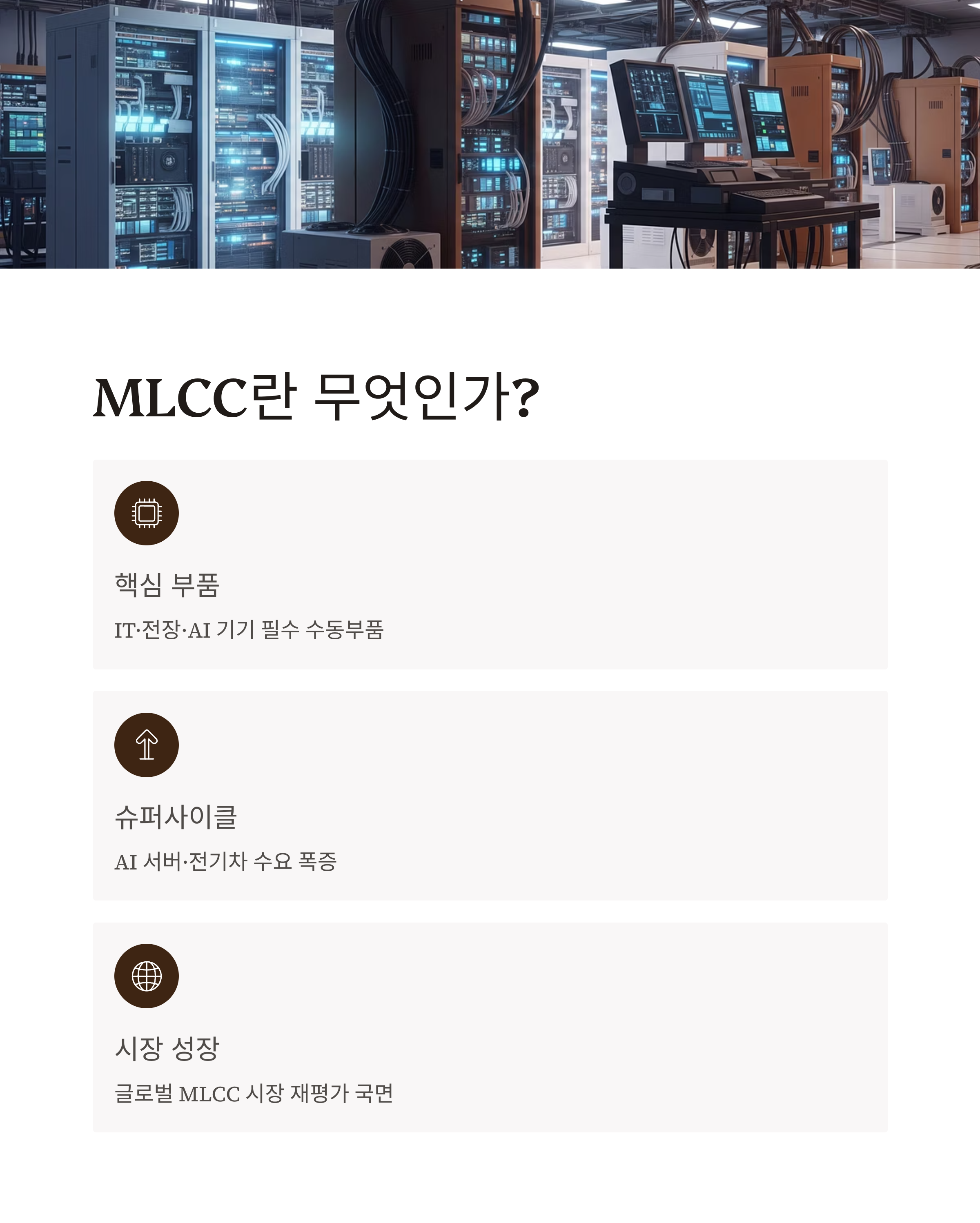 AI, 전장, 통신, 서버의 미래 수요를 결정짓는 핵심 인프라 부품입니다.