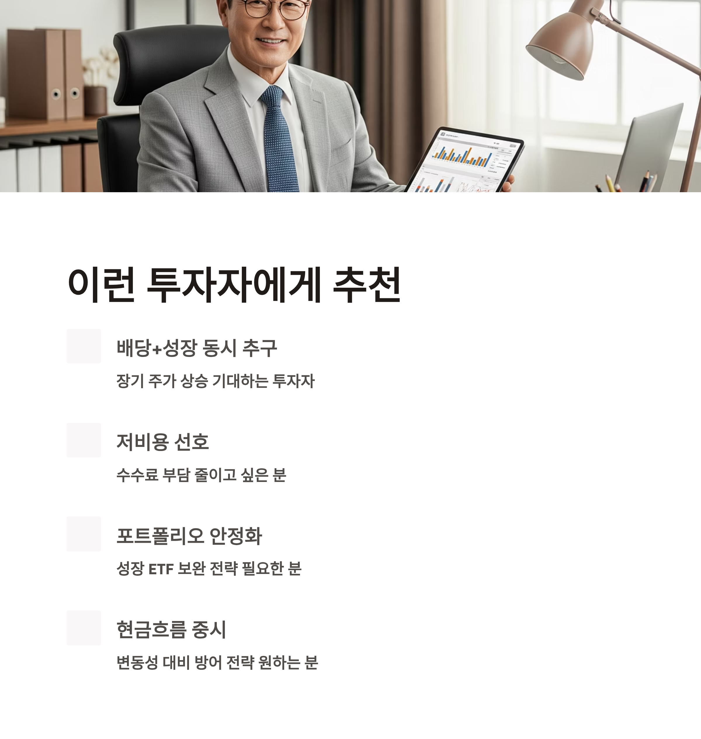✔ 배당 중심 투자를 원하면서도 장기적으로 주가 성장을 기대하는 분