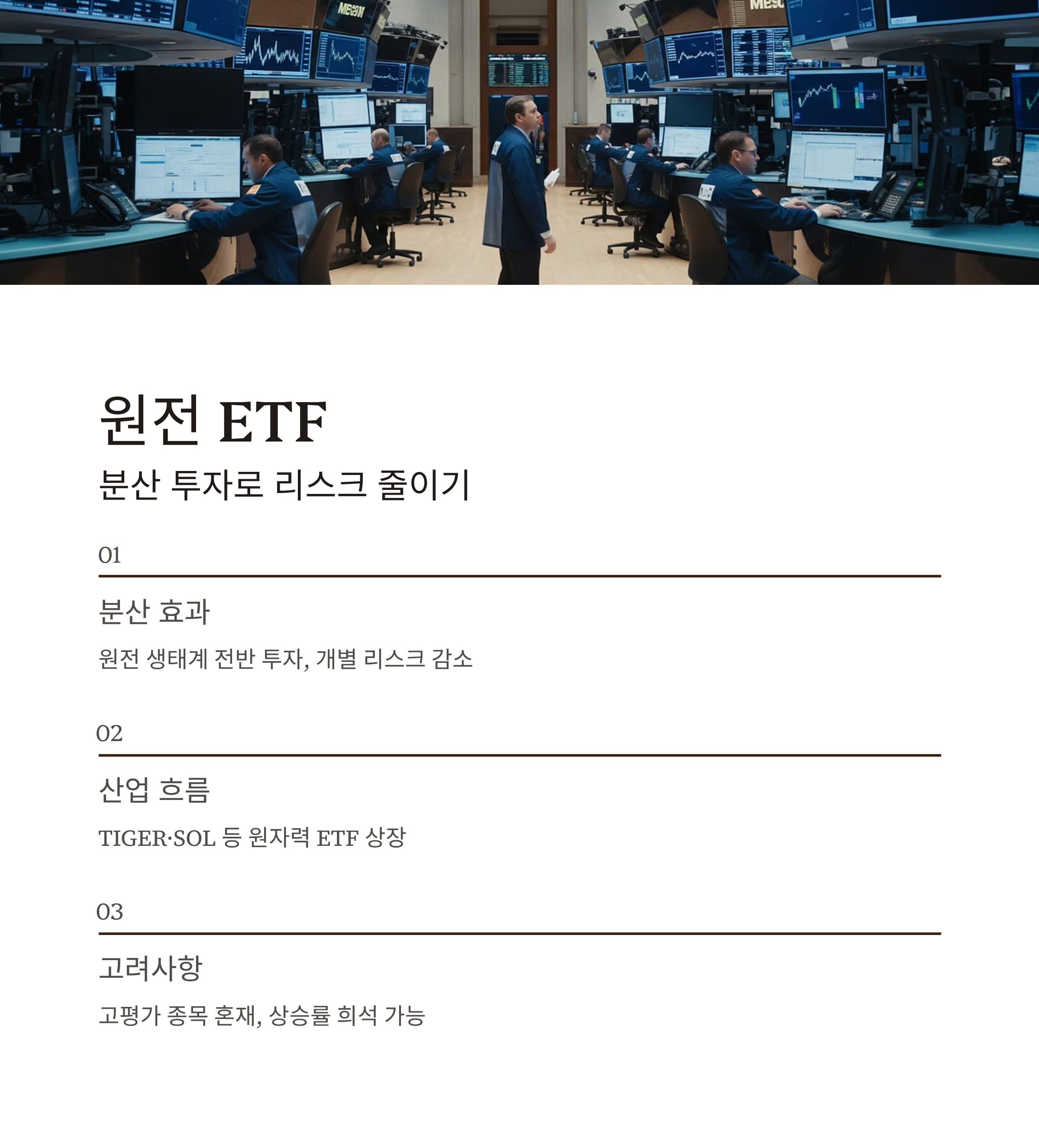 - 원전 ETF 20%: 산업 전반 리스크 분산 및 트렌드 대응